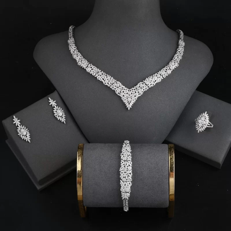 Platinum Plated Bridal Jewelry Set Bracelet Ring Earring and Necklace Sets Jewelry Women Zirconia Dubai Jewellery Anniversary
