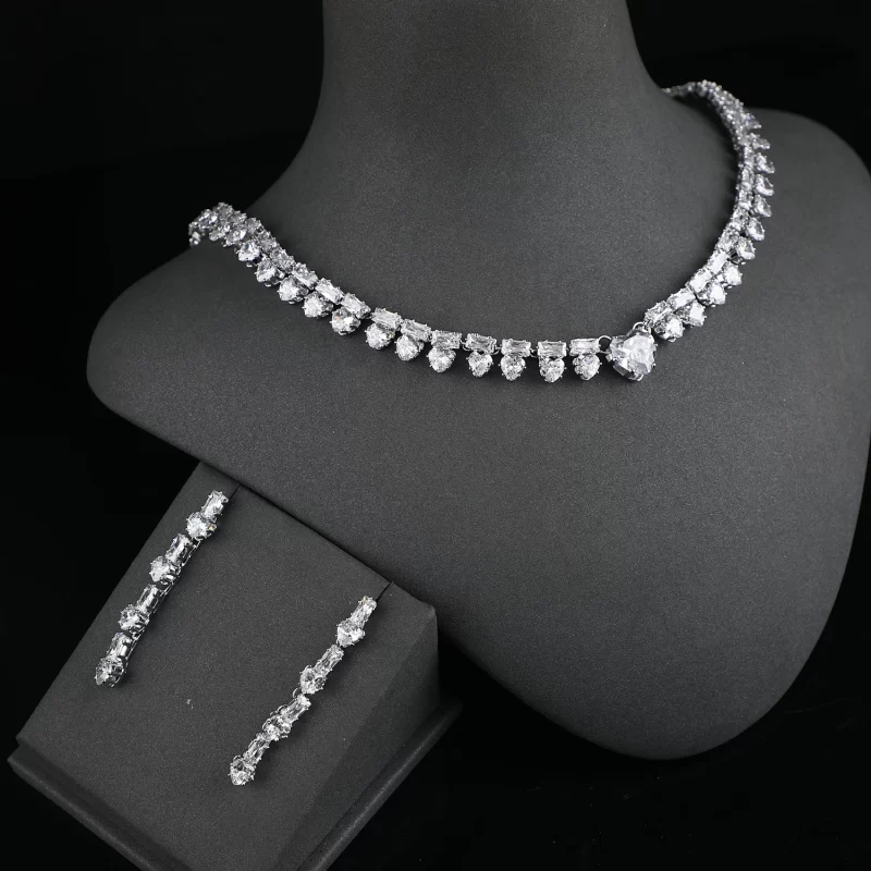 Luxury CZ Crystal Necklace And Earring Sets Wedding Bridal Zirconia Full UAE Dubai Jewelry Sets For Women Party
