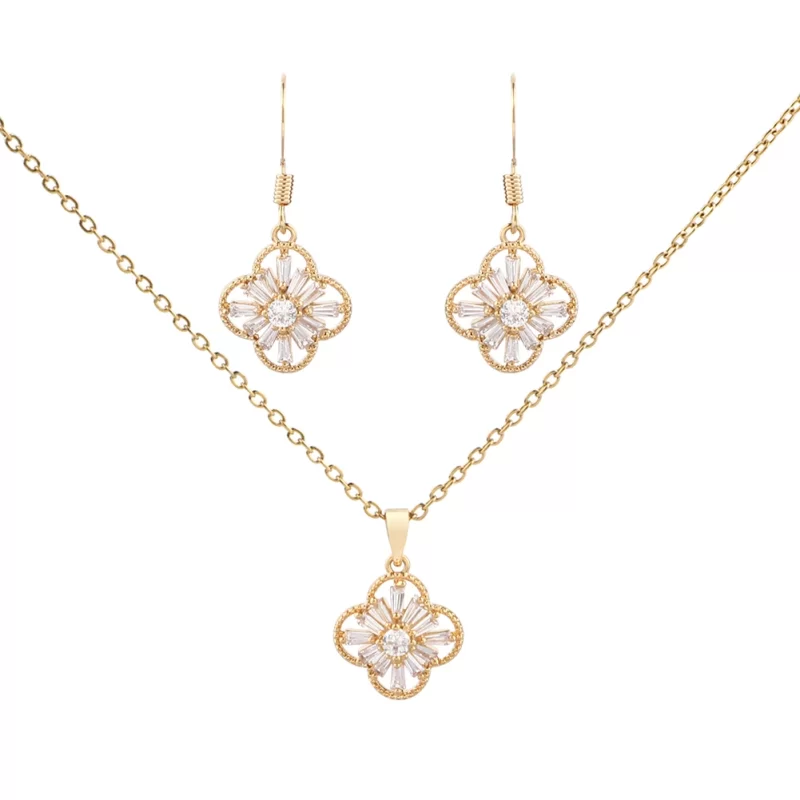 Shining Cubic Zircon Lucky Clover Pendant Earring And Necklace Sets Trending Women Jewelry Set 2024
