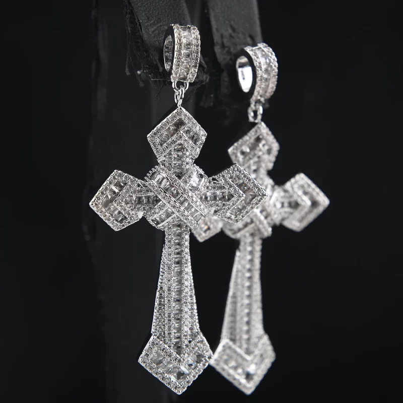 Fashion CZ Cross Pendant Statement Earrings 925 Silver Needle Gold Plated Zirconia Earrings Trend 2024