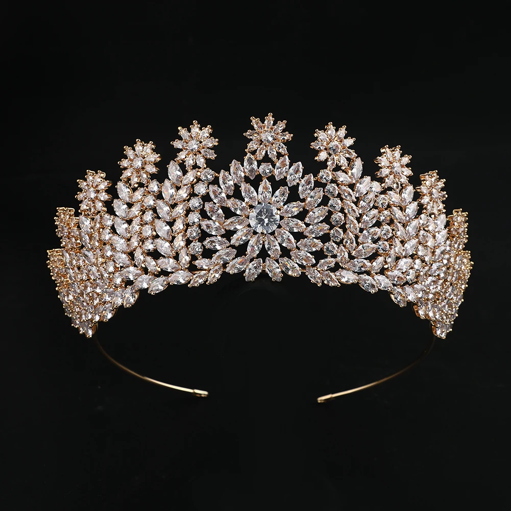 Gold Plated/ Platinum Plated Luxury Zircon Crowns For Bride Bridal Hair Accessories Wedding in Tiaras Pageant Miss World Crown