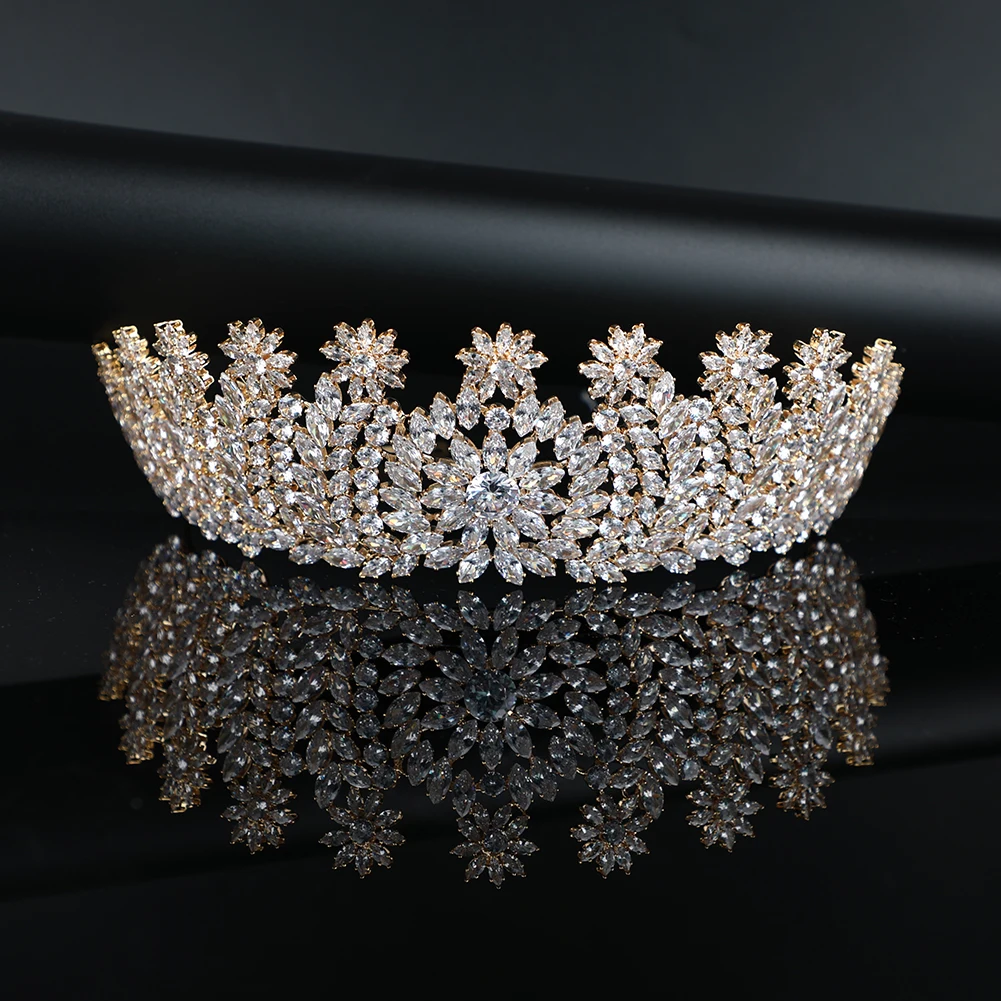 Handmade High Quality Bride Tiara Shining Cubic Zirconia CZ Bridal Hair Accessories Wedding Crowns Women