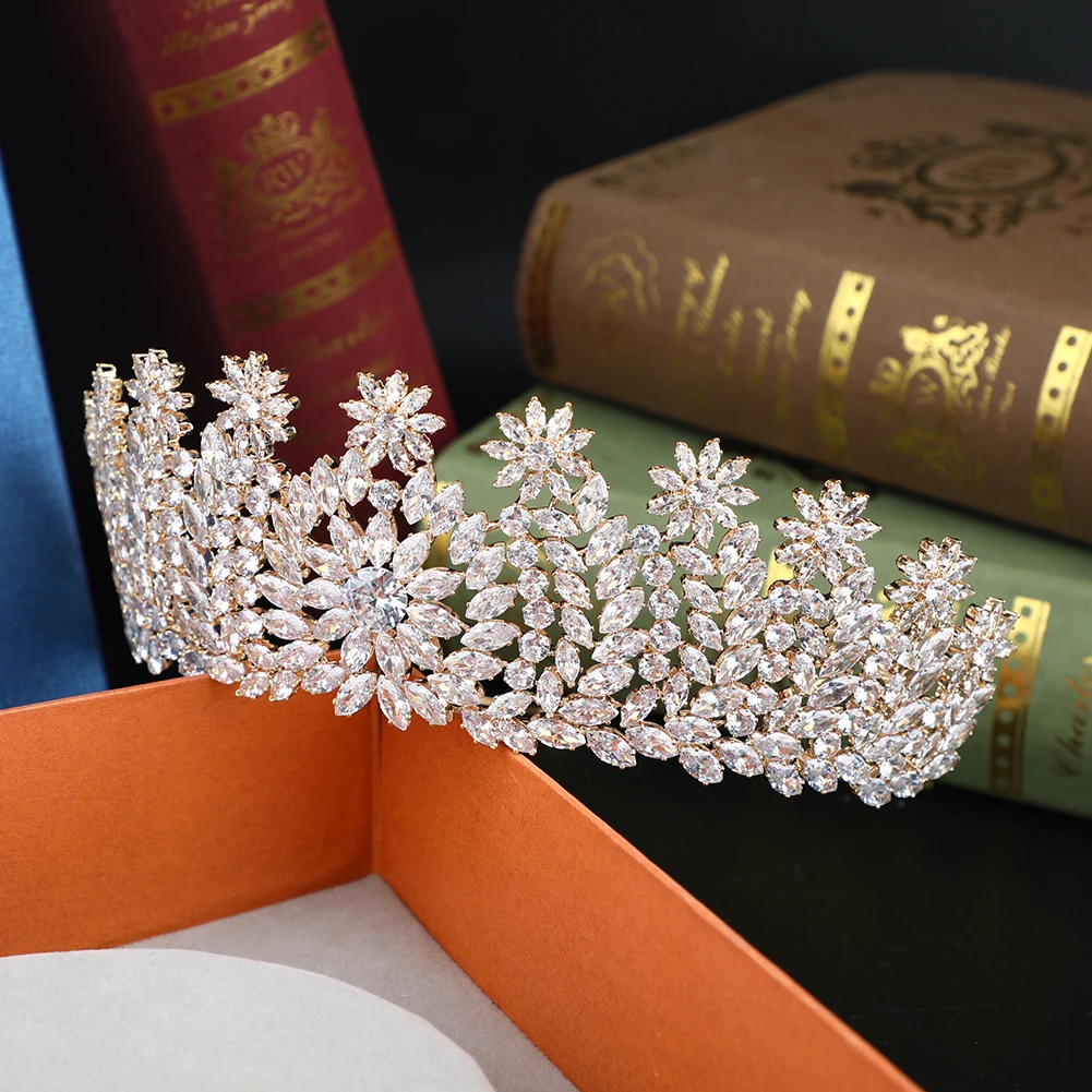 Gold Plated/ Platinum Plated Luxury Zircon Tiaras Pageant Crowns Large 6 inches Classical Wedding Crown Bridal Hair Accessories
