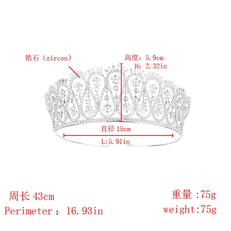 Handmade Noble Zircon Tiara Hair Jewelry Queen Crowns Large Bridal Hair Accessories Wedding Crown
