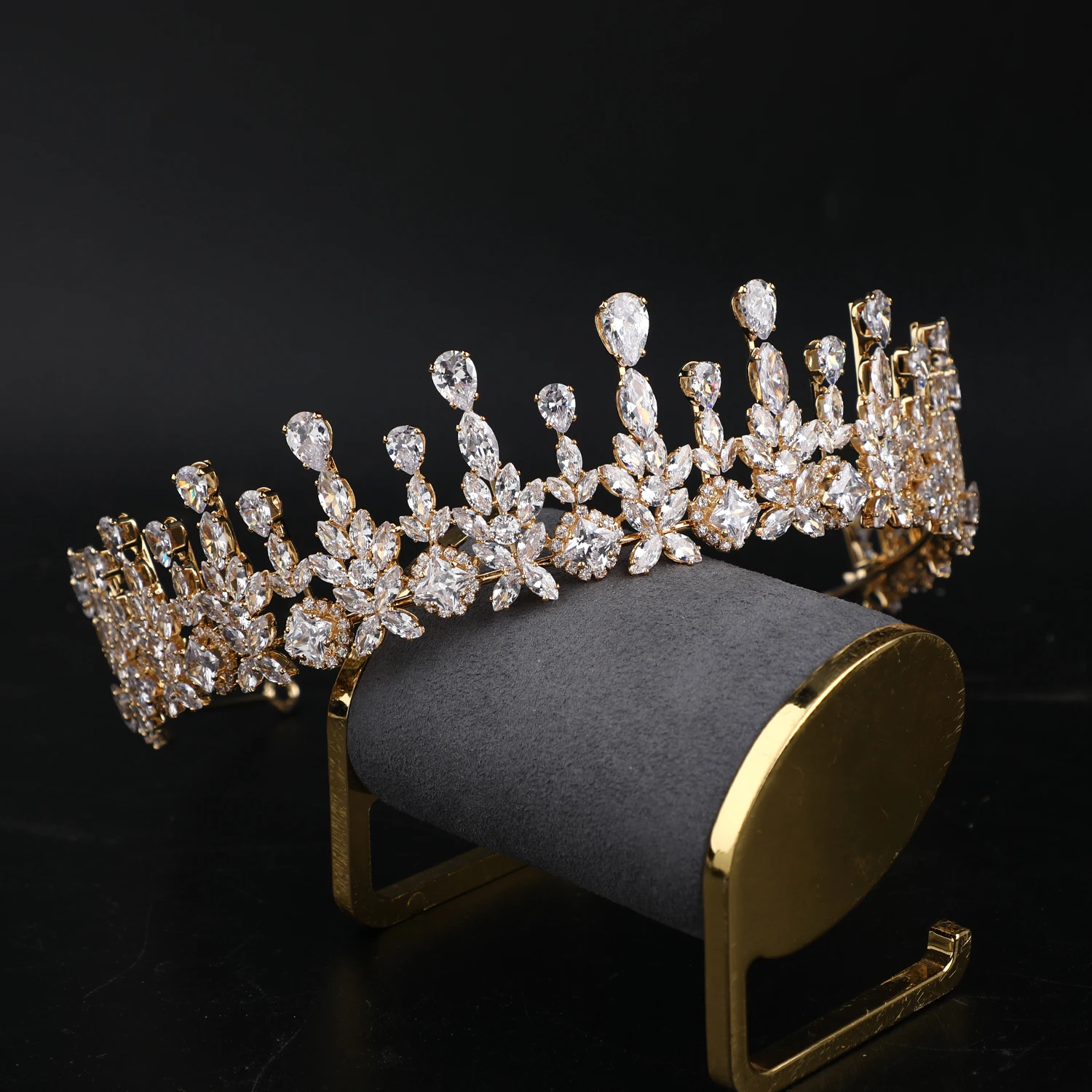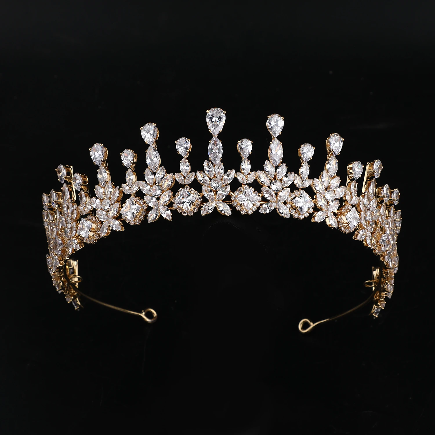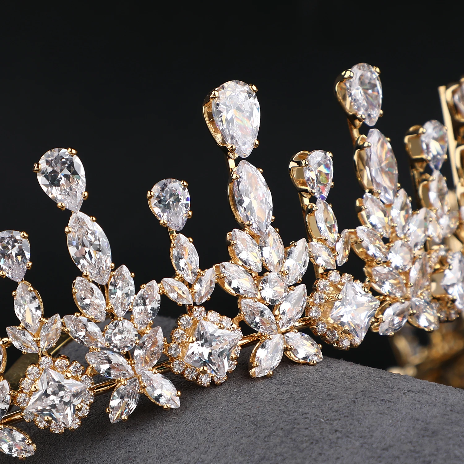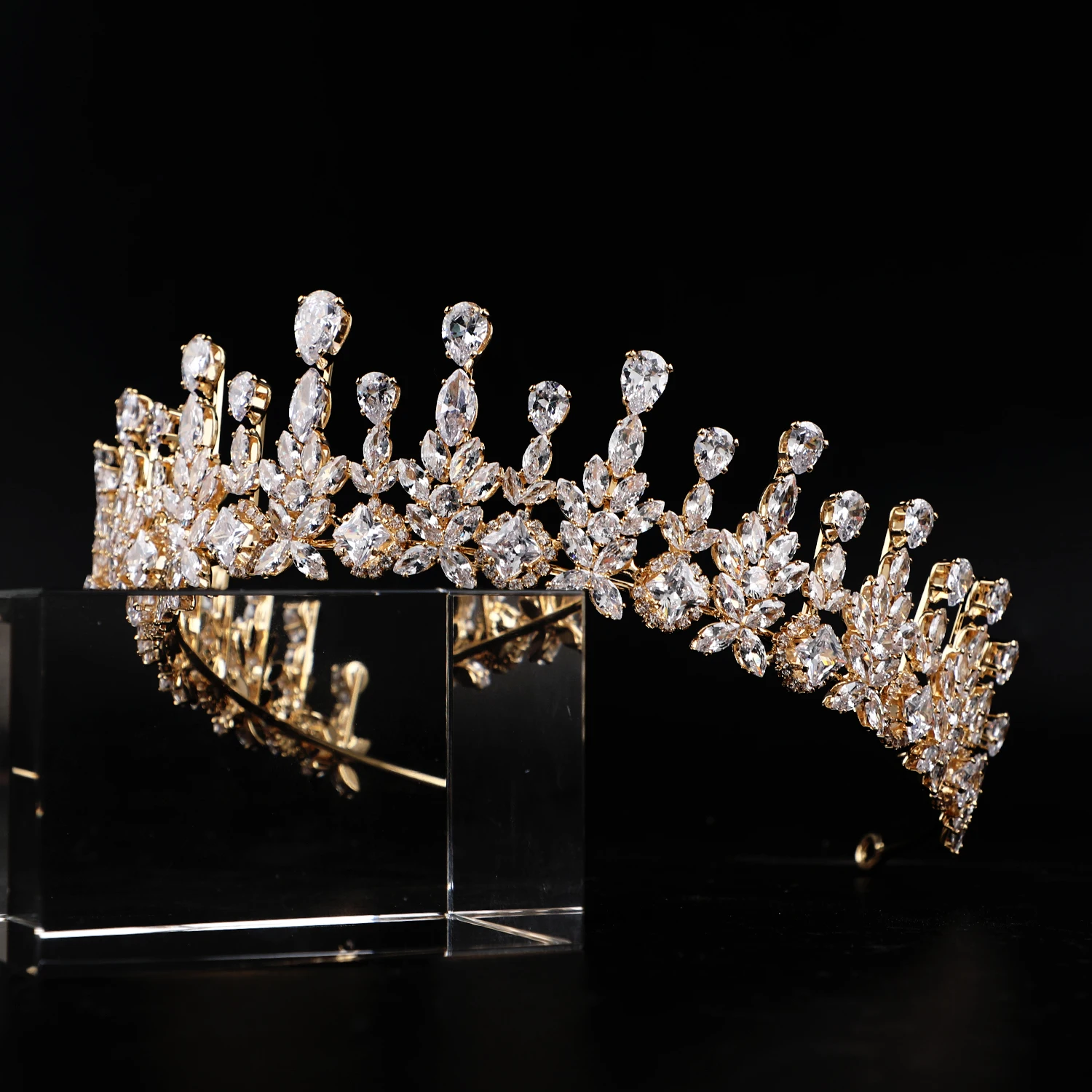 Handmade Cubic Zirconia Gold CZ Tiara Wedding Hairband Hair Jewelry Bridal Hair Accessories Headband