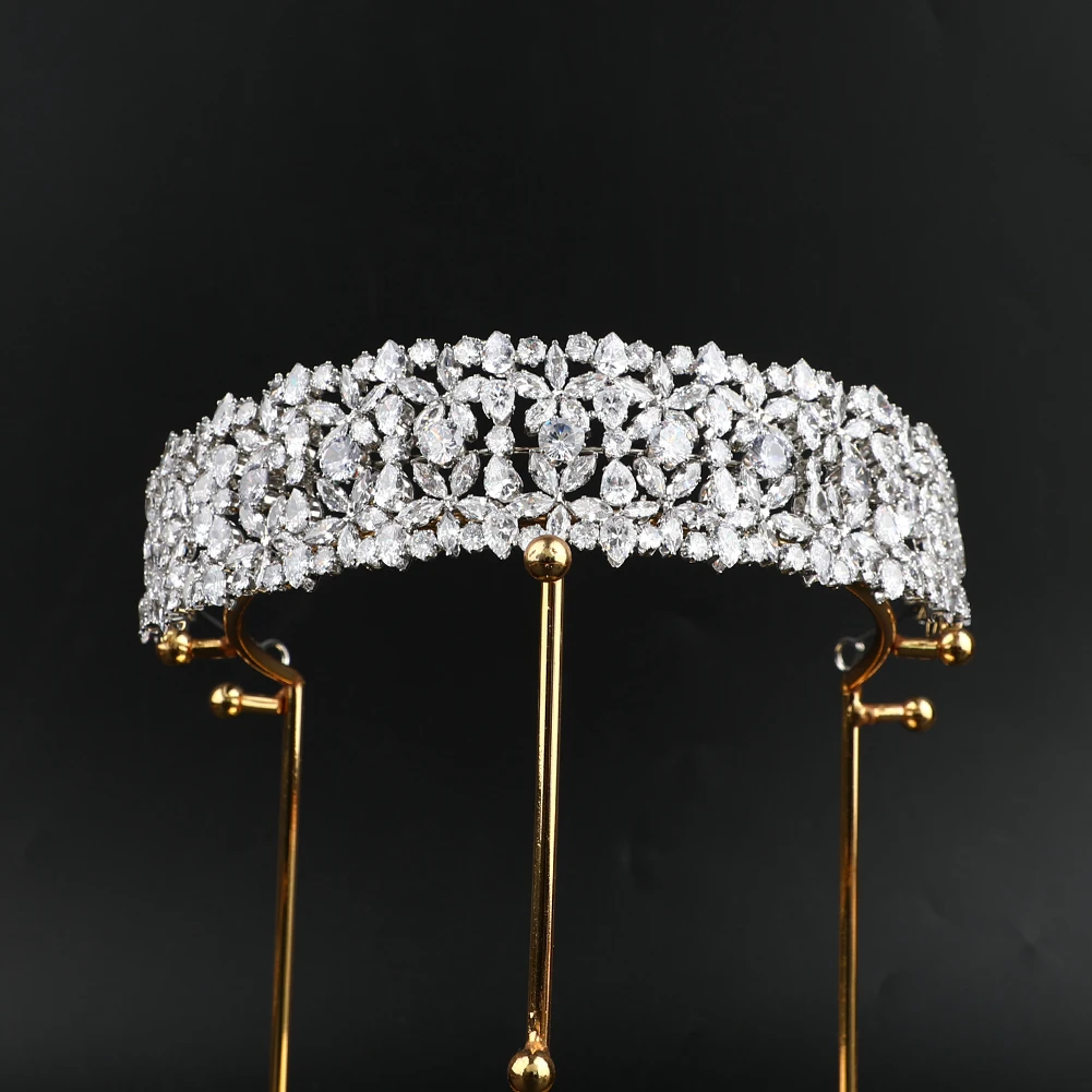 Handmade Noble Zircon Tiara Hair Jewelry Queen Crowns Large Bridal Hair Accessories Wedding Crown