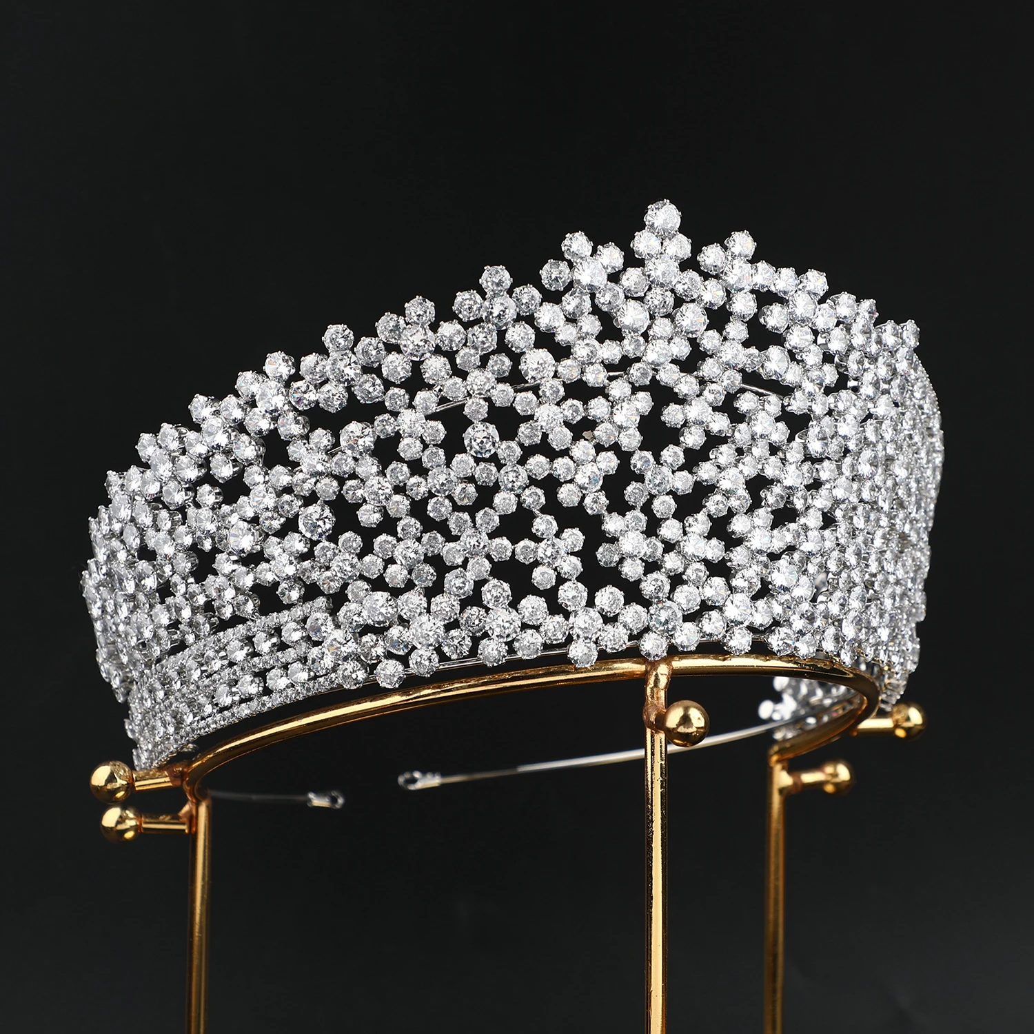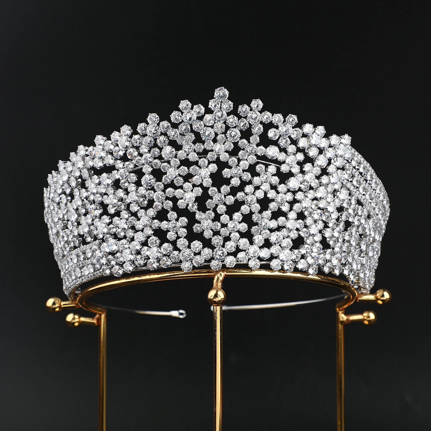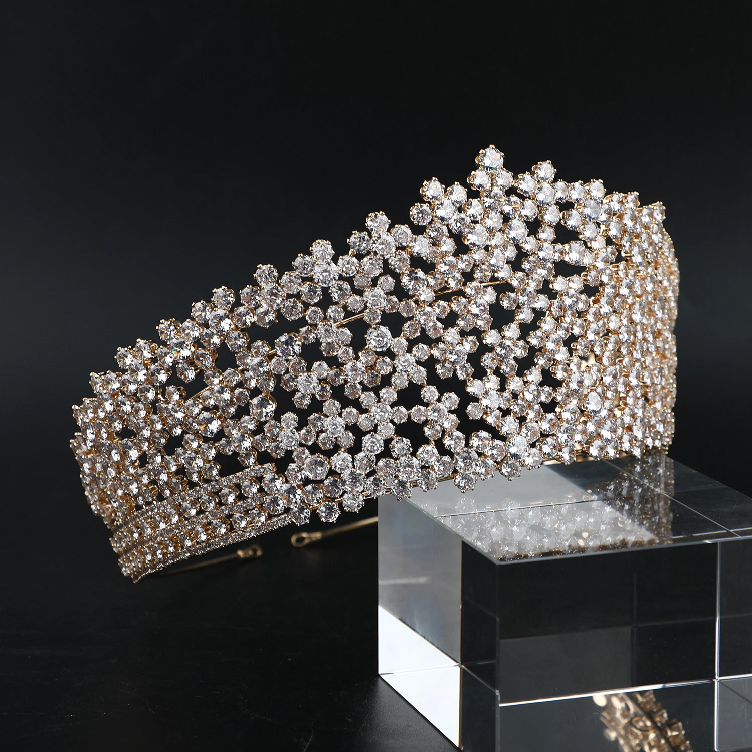 Gold Plated/ Platinum Plated Luxury Zircon Tiaras Pageant Crowns Large 6 inches Classical Wedding Crown Bridal Hair Accessories