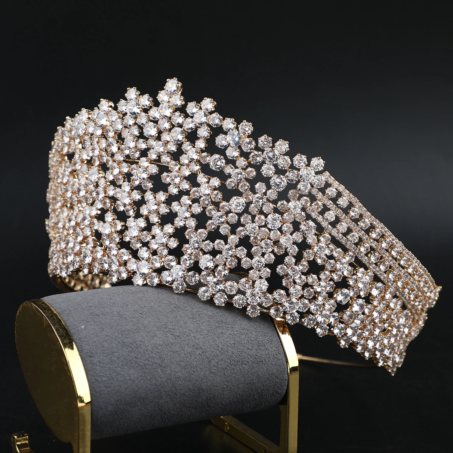 Handmade Cubic Zirconia Gold CZ Tiara Wedding Hairband Hair Jewelry Bridal Hair Accessories Headband