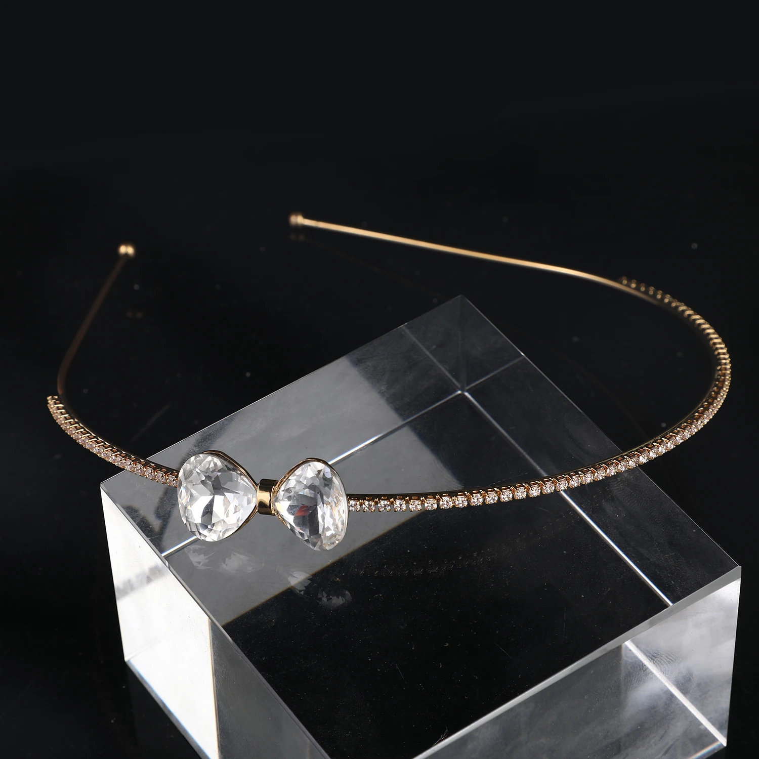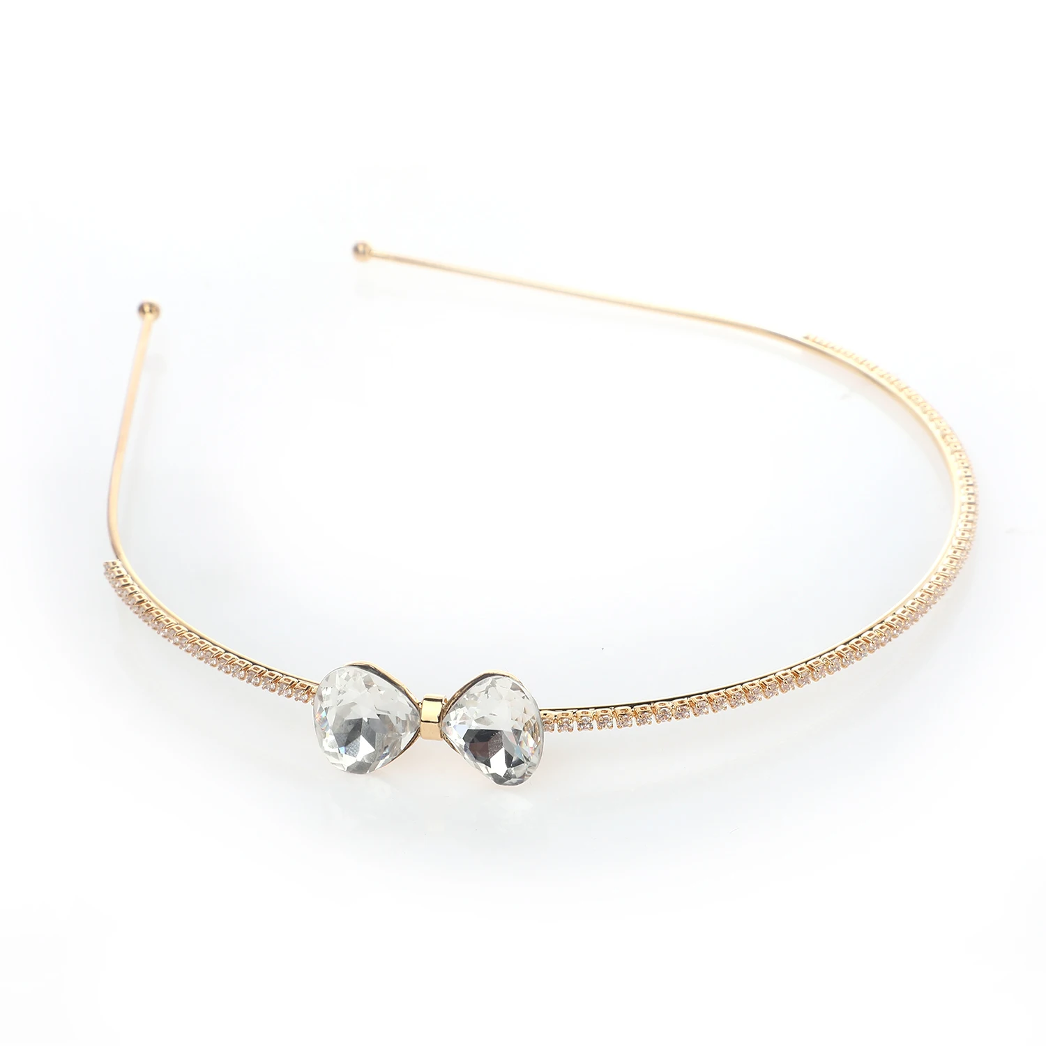 Home Hair Accessories High Quality Gold plated CZ Zircon Bow-knot Charm Brass Hairbands For Women And Girls Bridal Headbands