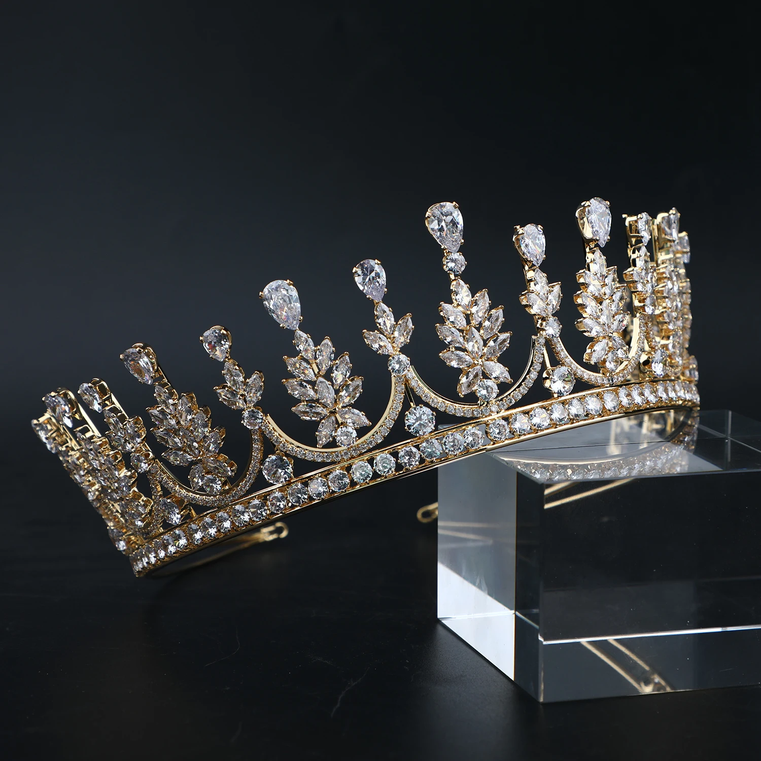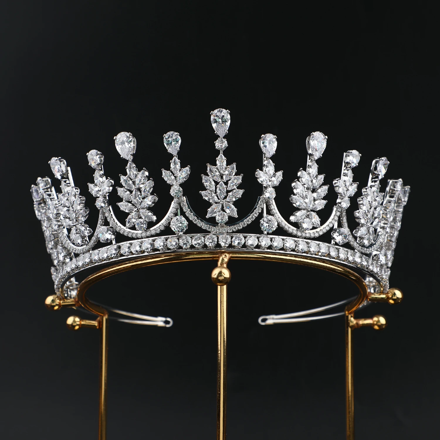Gold Plated/ Platinum Plated Zircon Crowns Jewelry Miss Universe Pageant Crown Bridal Headpiece Wedding Hair Accessories Tiaras