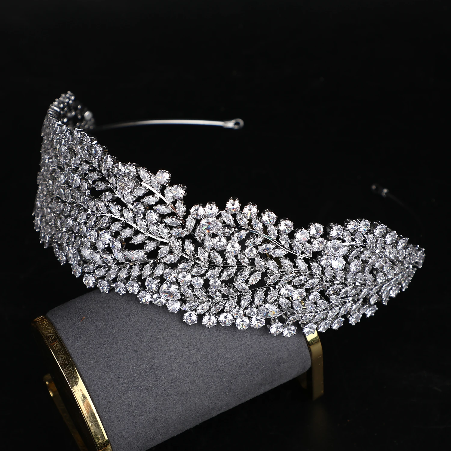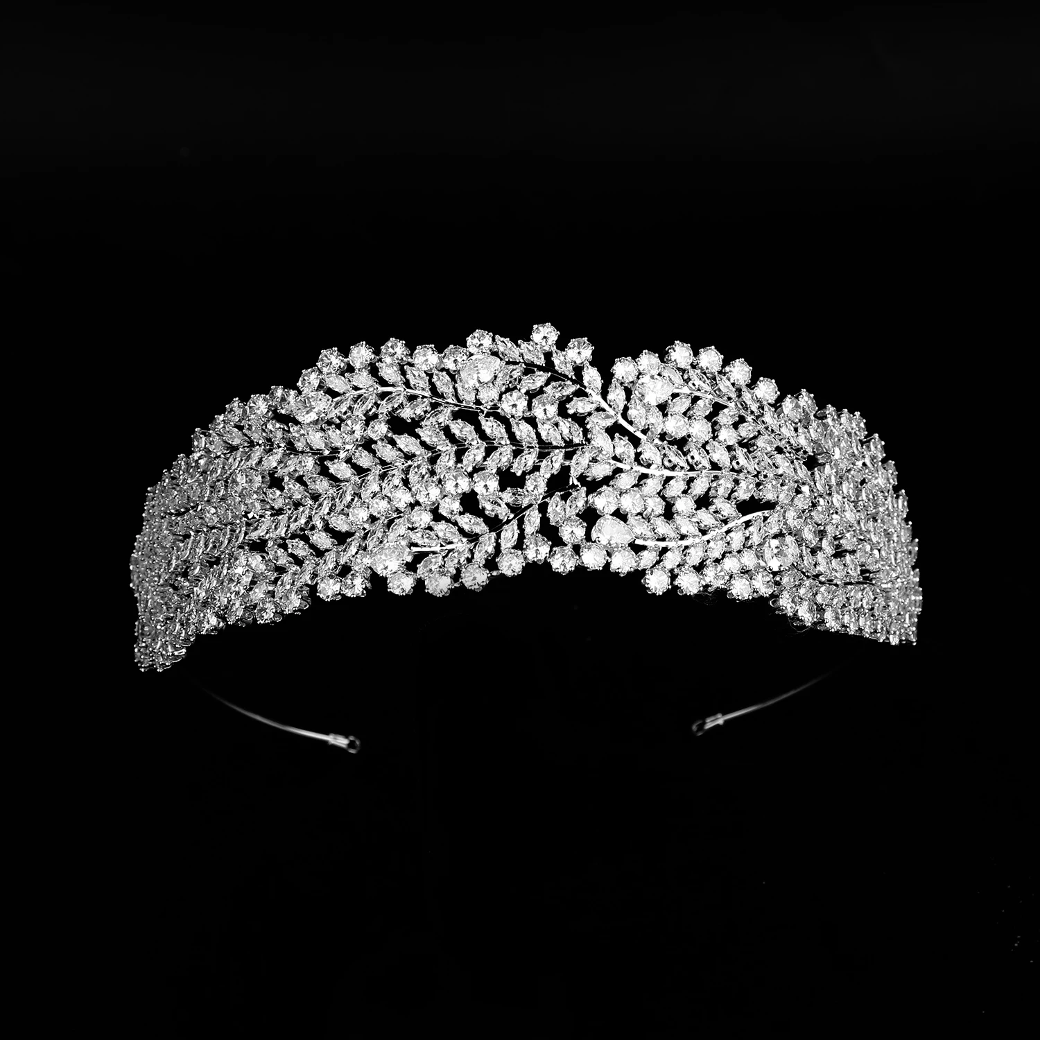 Handmade High Quality Bride Tiara Shining Cubic Zirconia CZ Bridal Hair Accessories Wedding Crowns Women