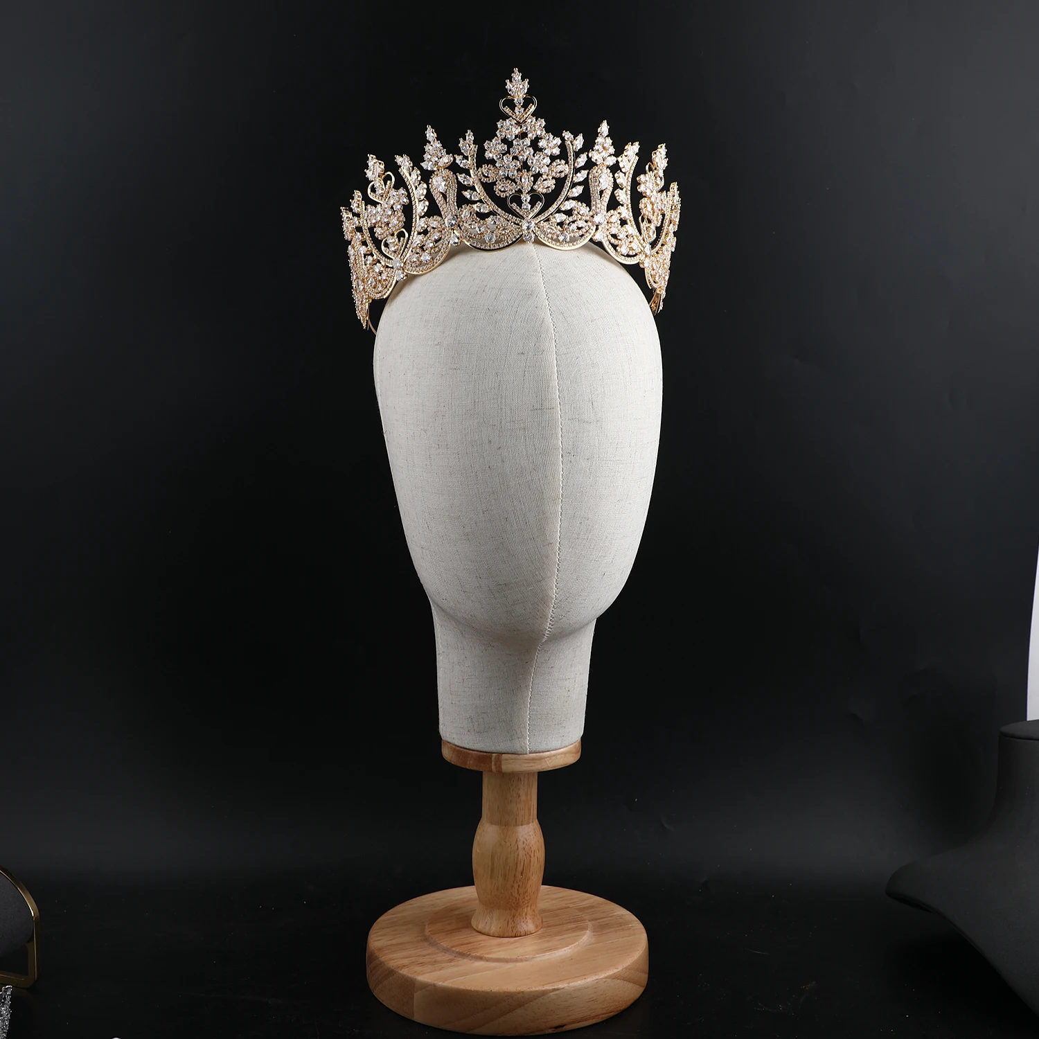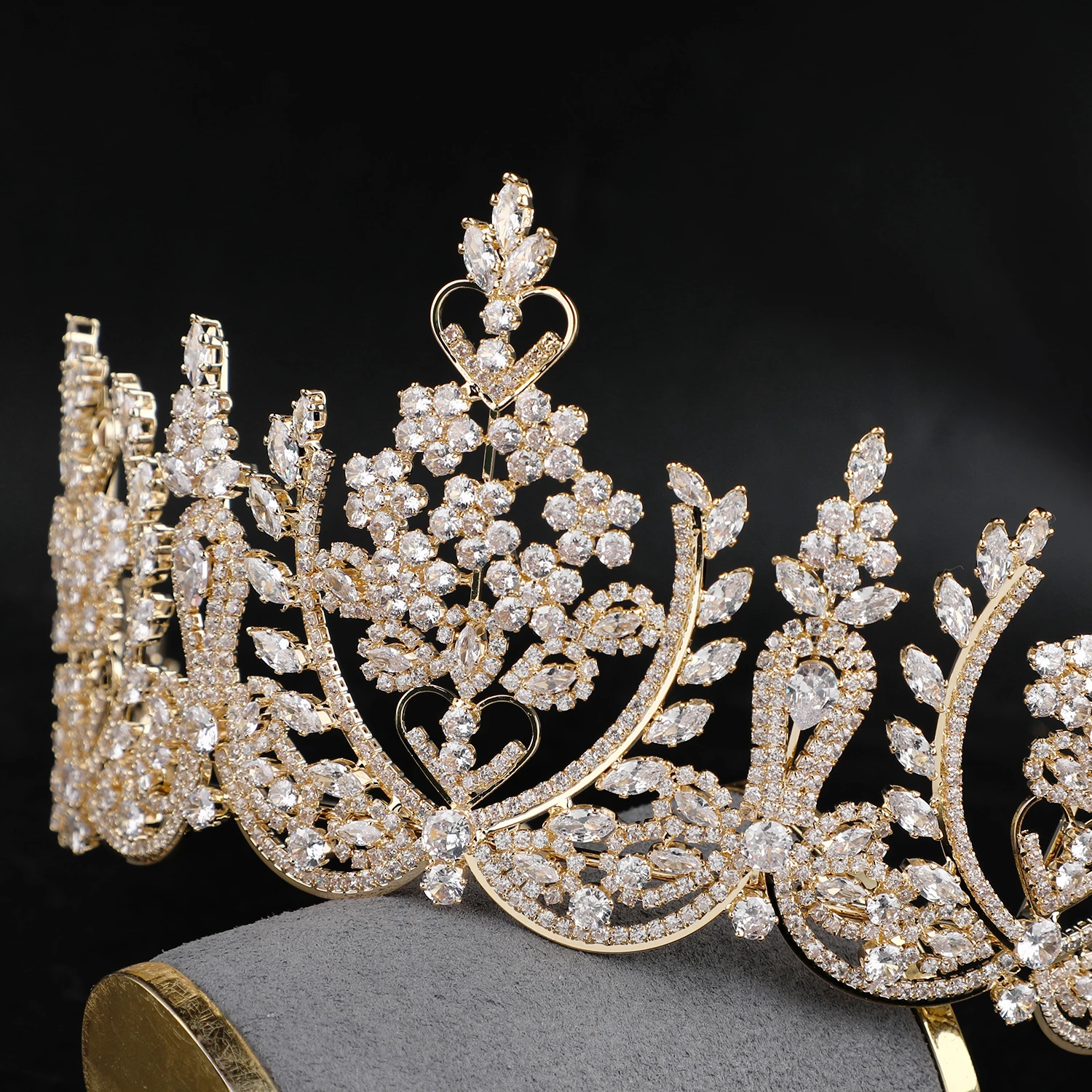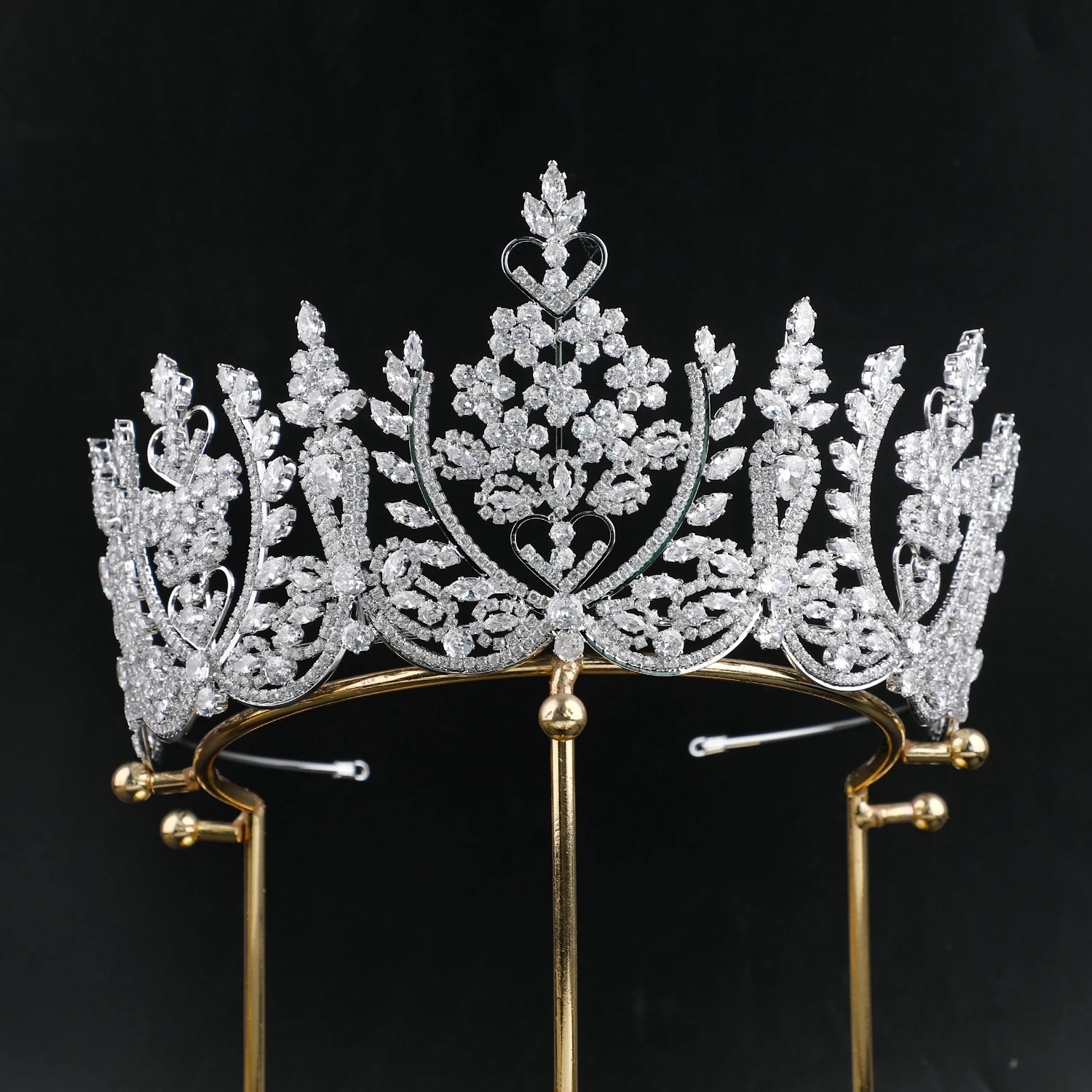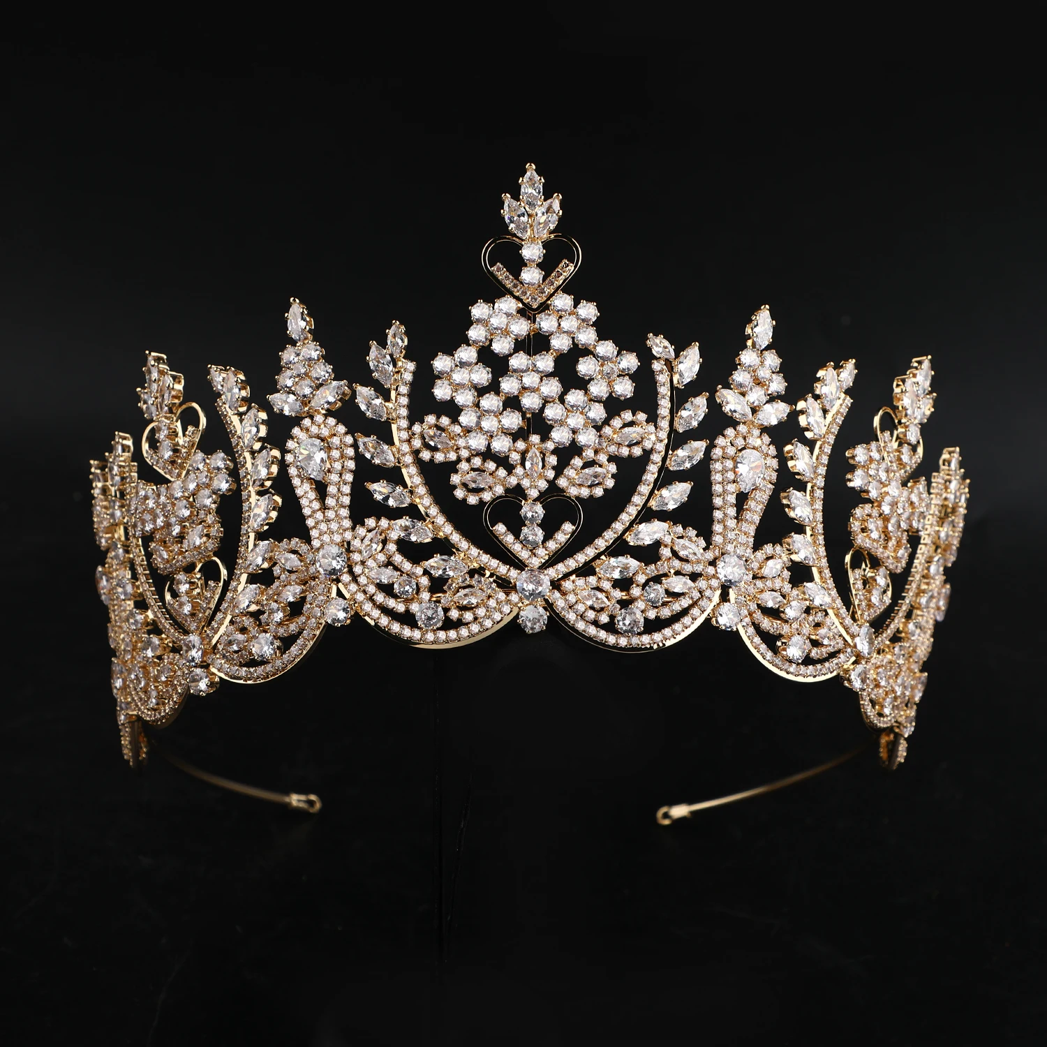 Handmade Noble Zircon Tiara Hair Jewelry Queen Crowns Large Bridal Hair Accessories Wedding Crown