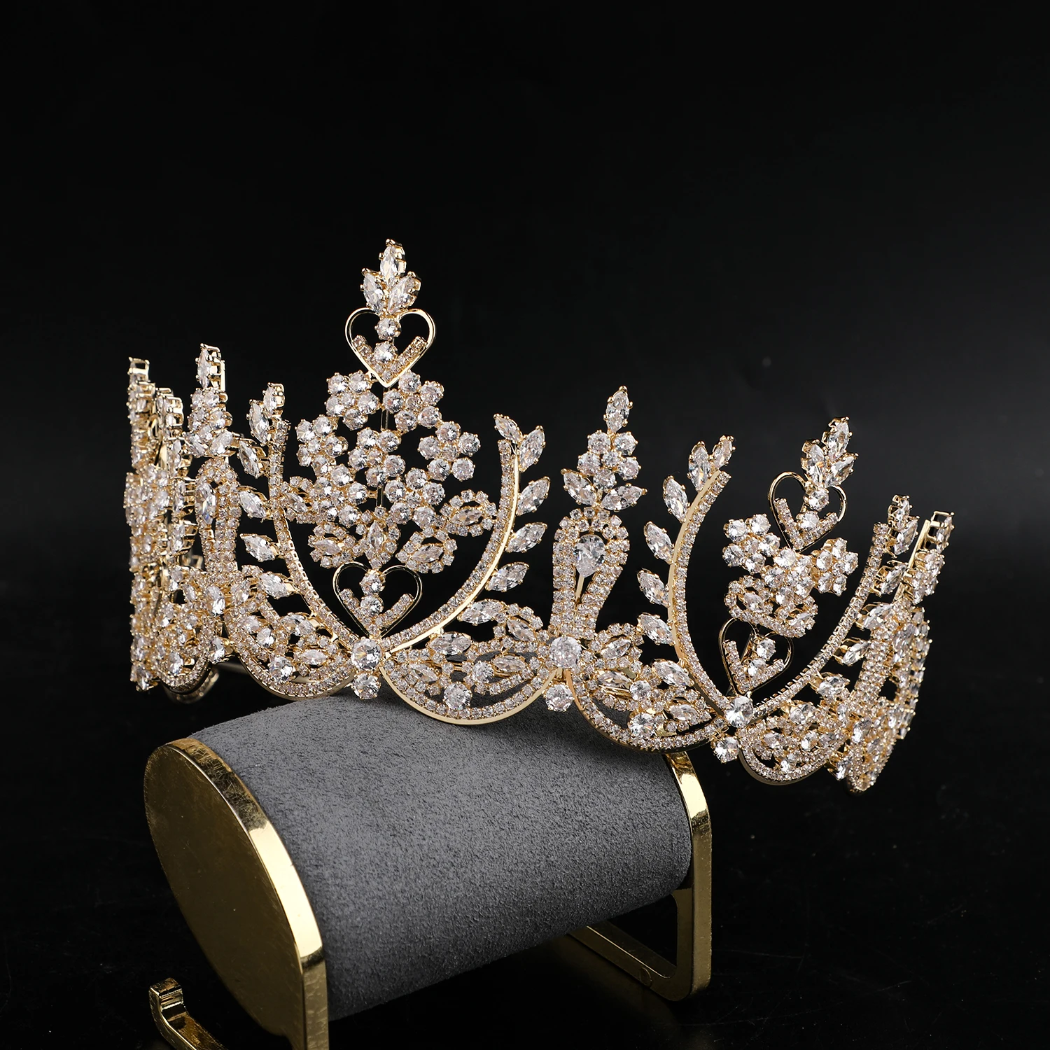 High-end Luxury Cubic Zircon Wedding Crowns Gold CZ Tiara Exquisite Bridal Hair Accessories Coronal Bridal Tiara