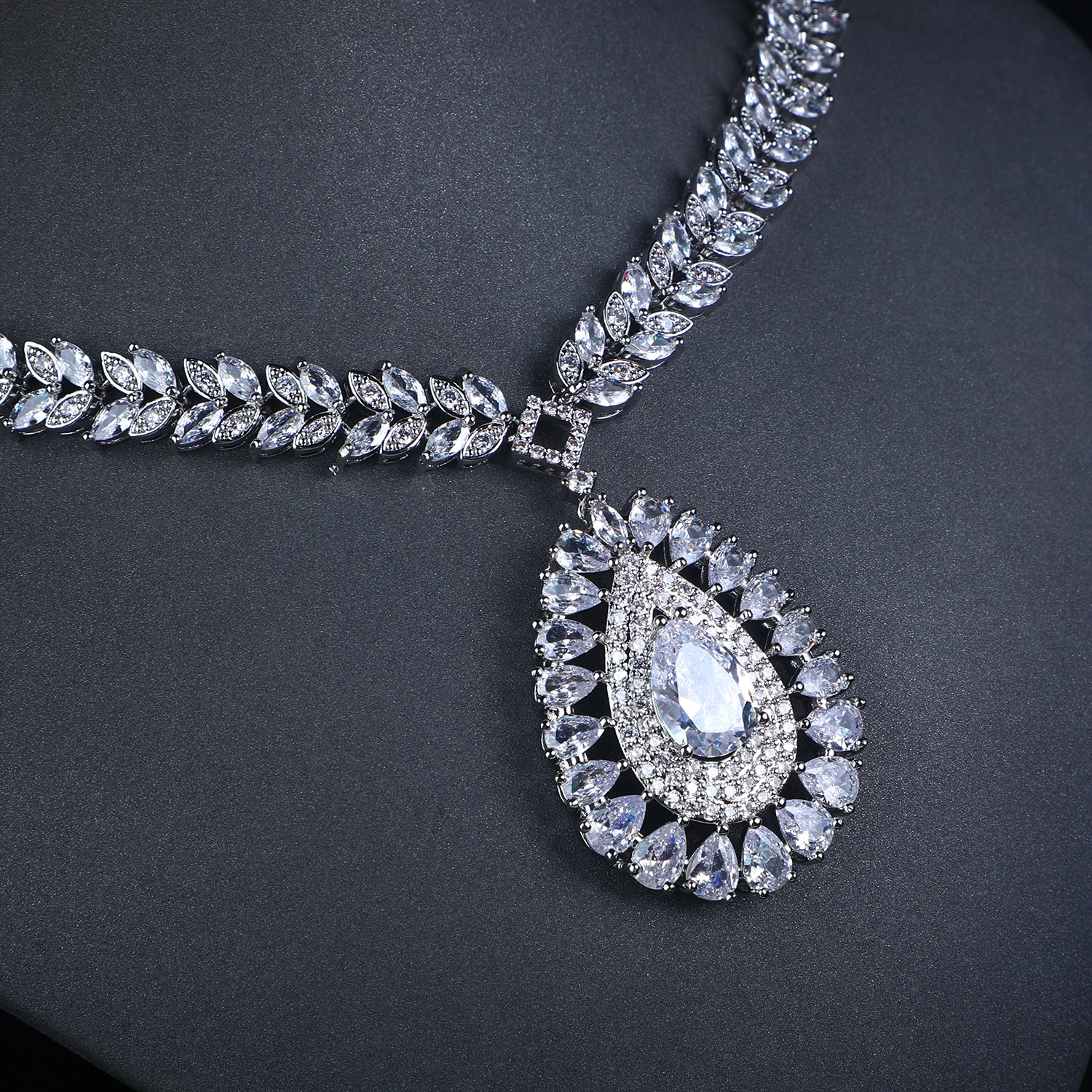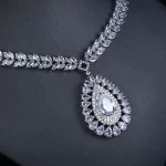 Luxury Cubic Zirconia Large Pendant Necklace Set American Diamond 4-piece Dubai Indian Party Wedding Bridal Jewelry Sets