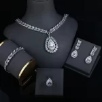Luxury Bling Full Zircon 4-piece Necklace Sets Dubai Jewellery High Quality Tarnish Free Wedding Bridal Jewelry Sets