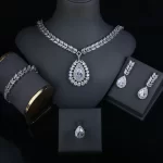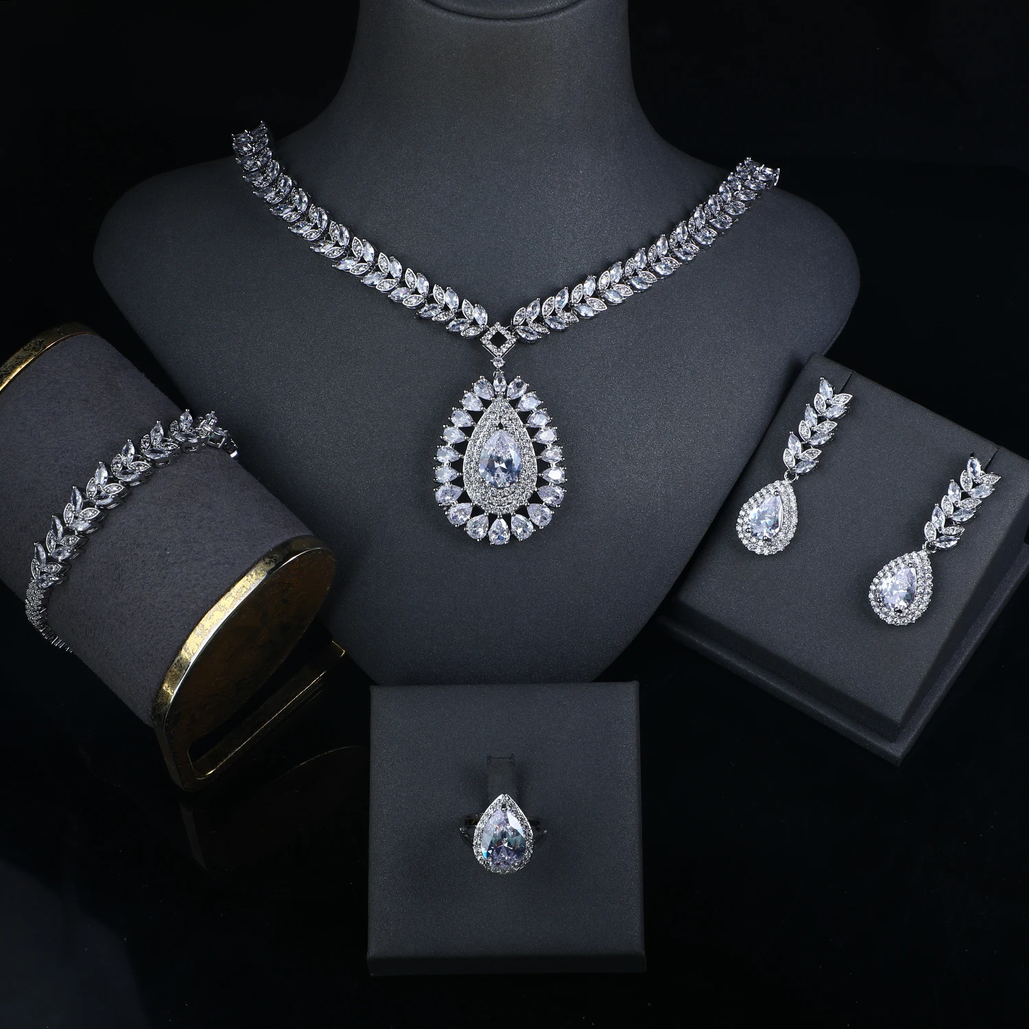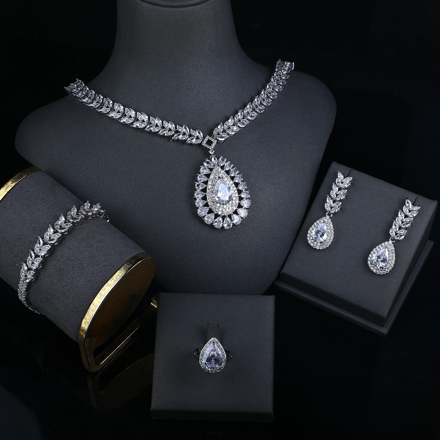 Platinum Plated Jewelry Set Bracelet Ring Earrings And Necklace Set in Jewellery Sets Fashion Luxurious Zircon Jewelry Display