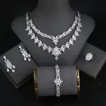 New Fashion Zircon Silver Charm 4 Piece Bridal Jewelry Sets Arabic Dubai UAE Wedding Jewelry Sets