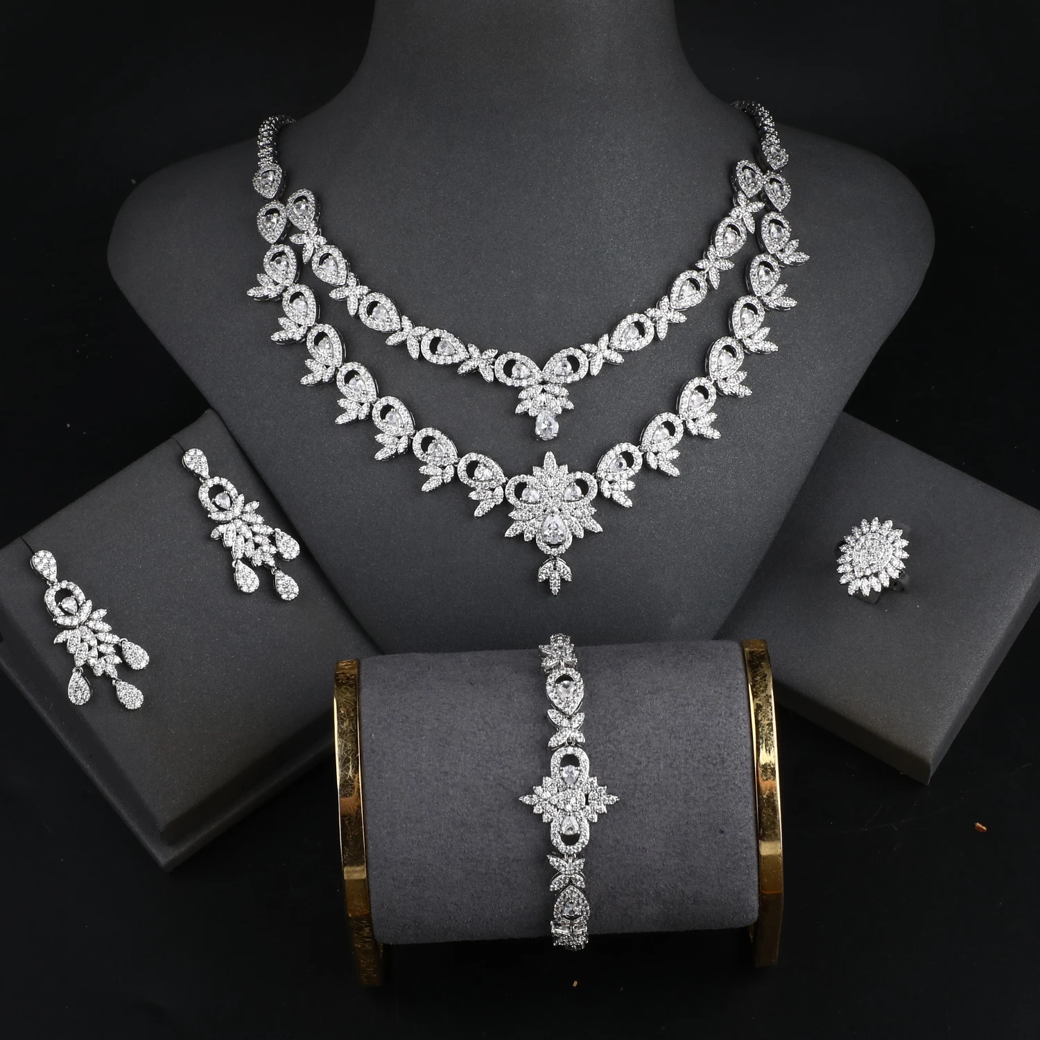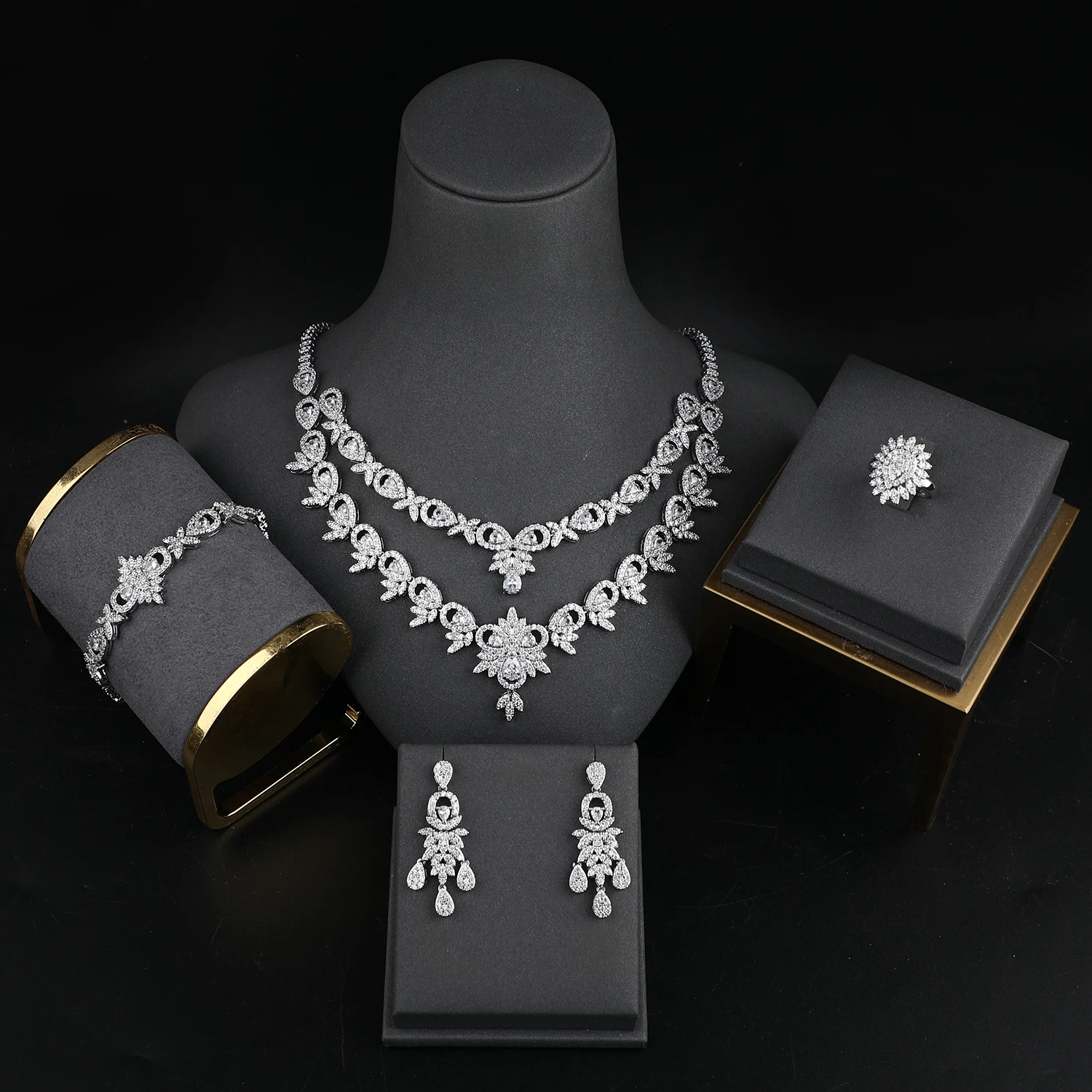 Luxury Four Piece Suit Cubic Zirconia Indian Jewellery Set Dubai Arab Bridal Jewelry Sets