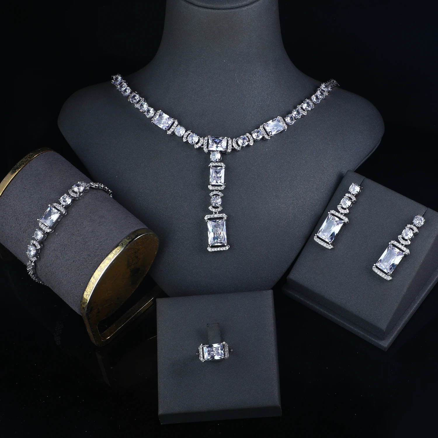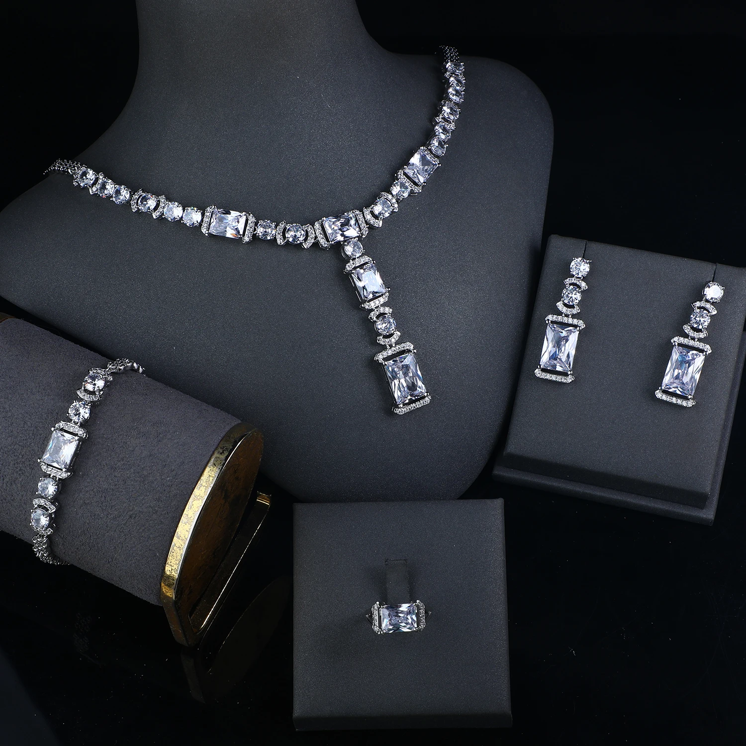 Luxury Bling Full Zircon 4-piece Necklace Sets Dubai Jewellery High Quality Tarnish Free Wedding Bridal Jewelry Sets
