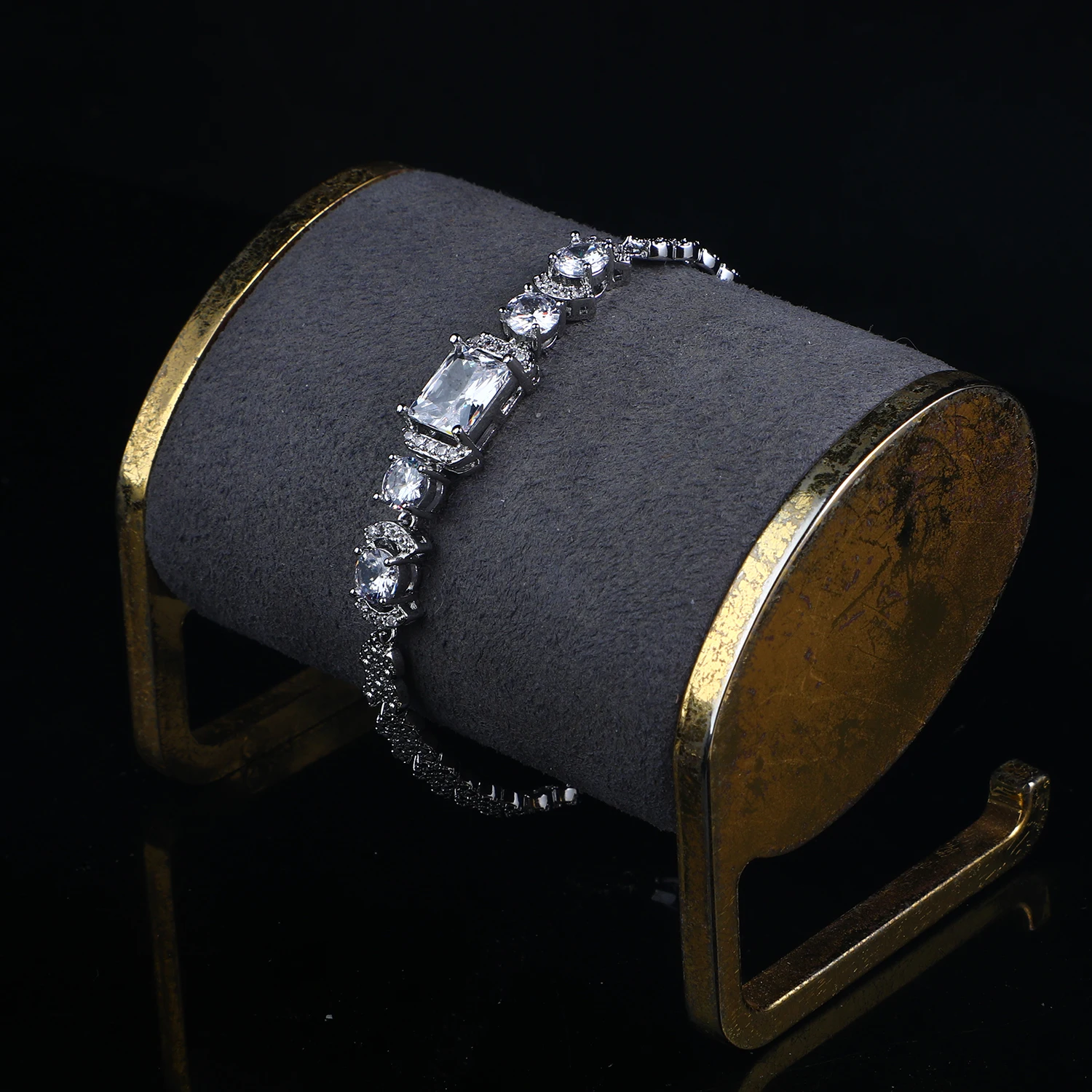 Platinum Plated Jewelry New for Women Fashion Elegant Gift Zircon Necklace Earring Bracelet Ring Set Jewellery Sets