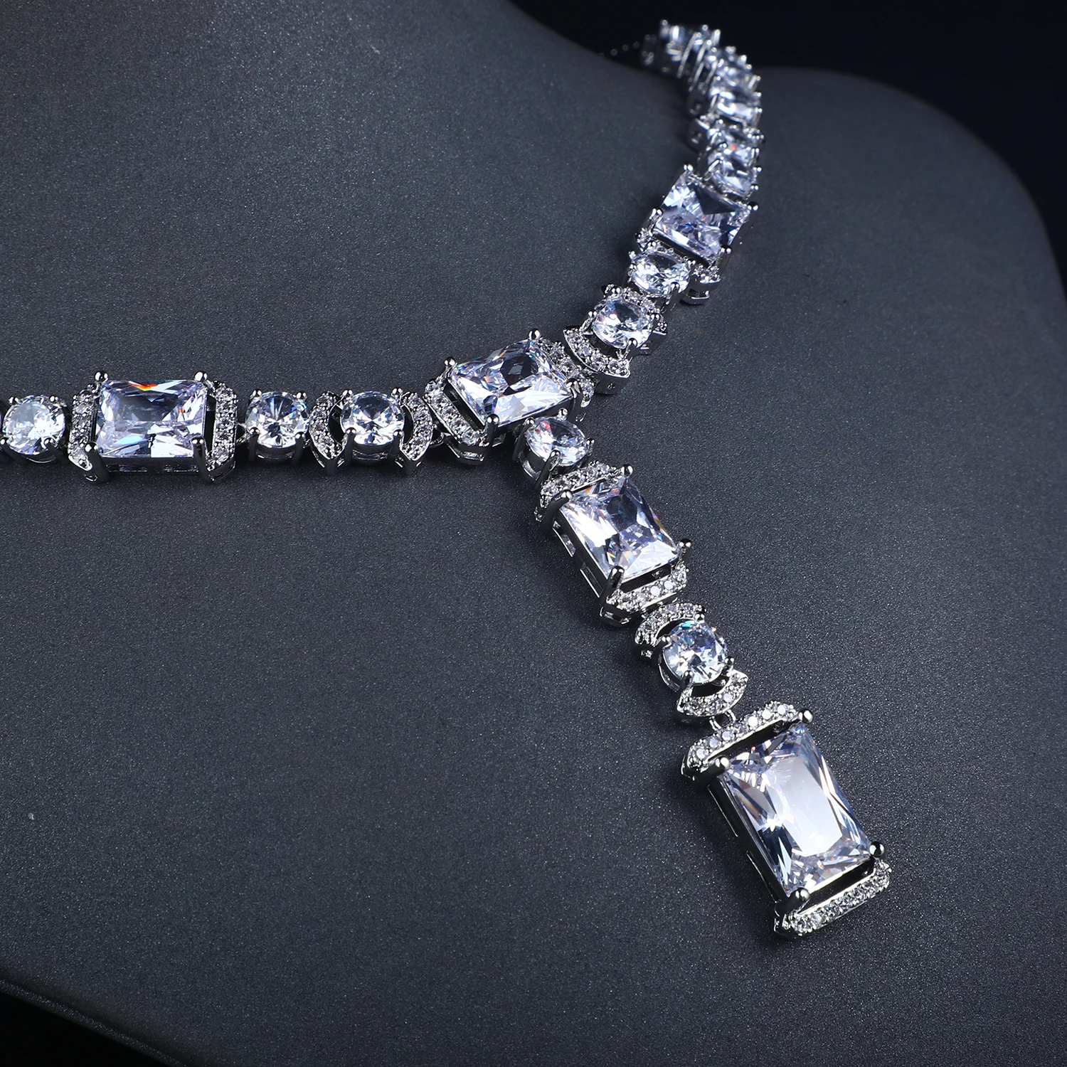 New 2024 Shiny Cubic Zircon Necklace Jewelry Sets for Women Bride Charm Wedding Bridal Luxury Accessories
