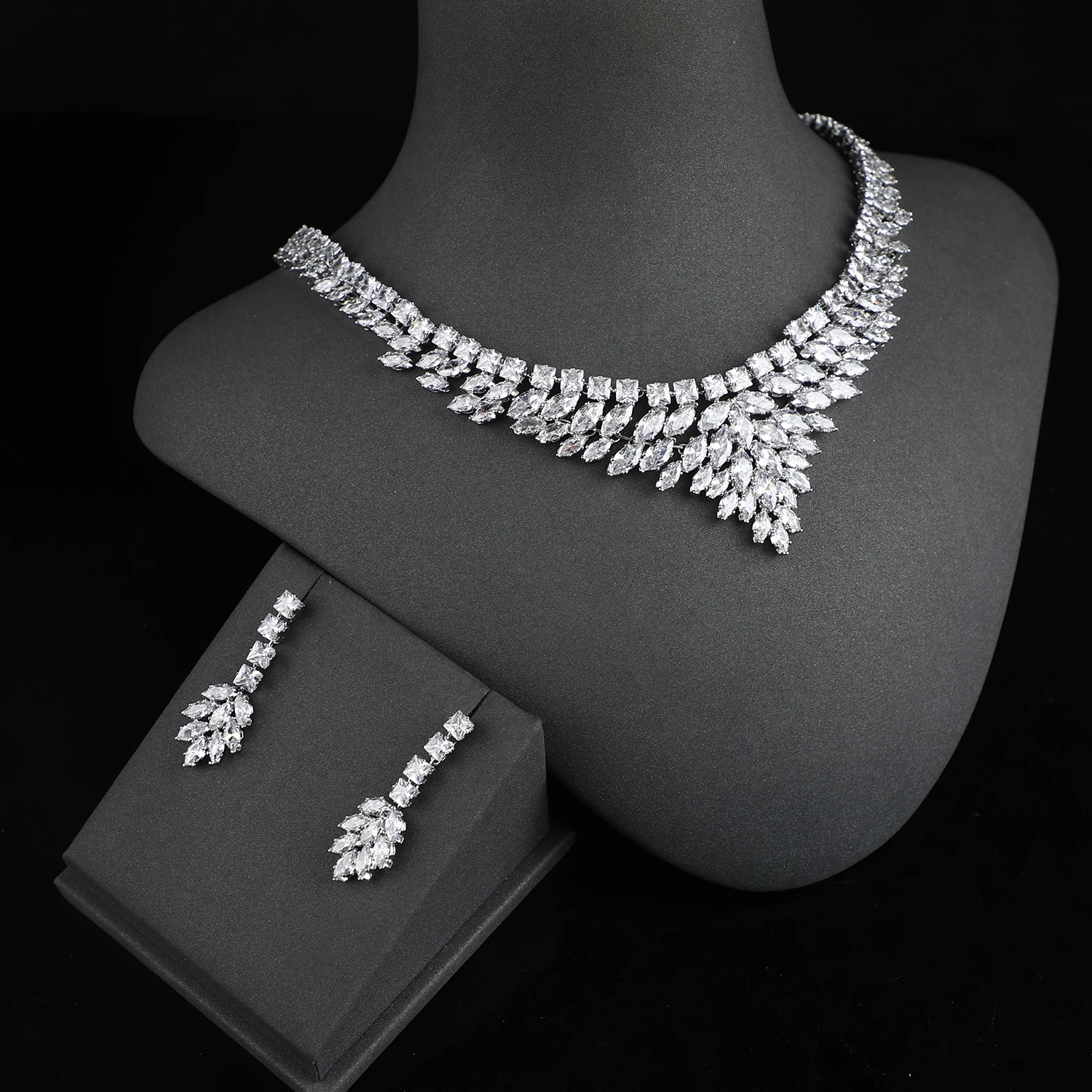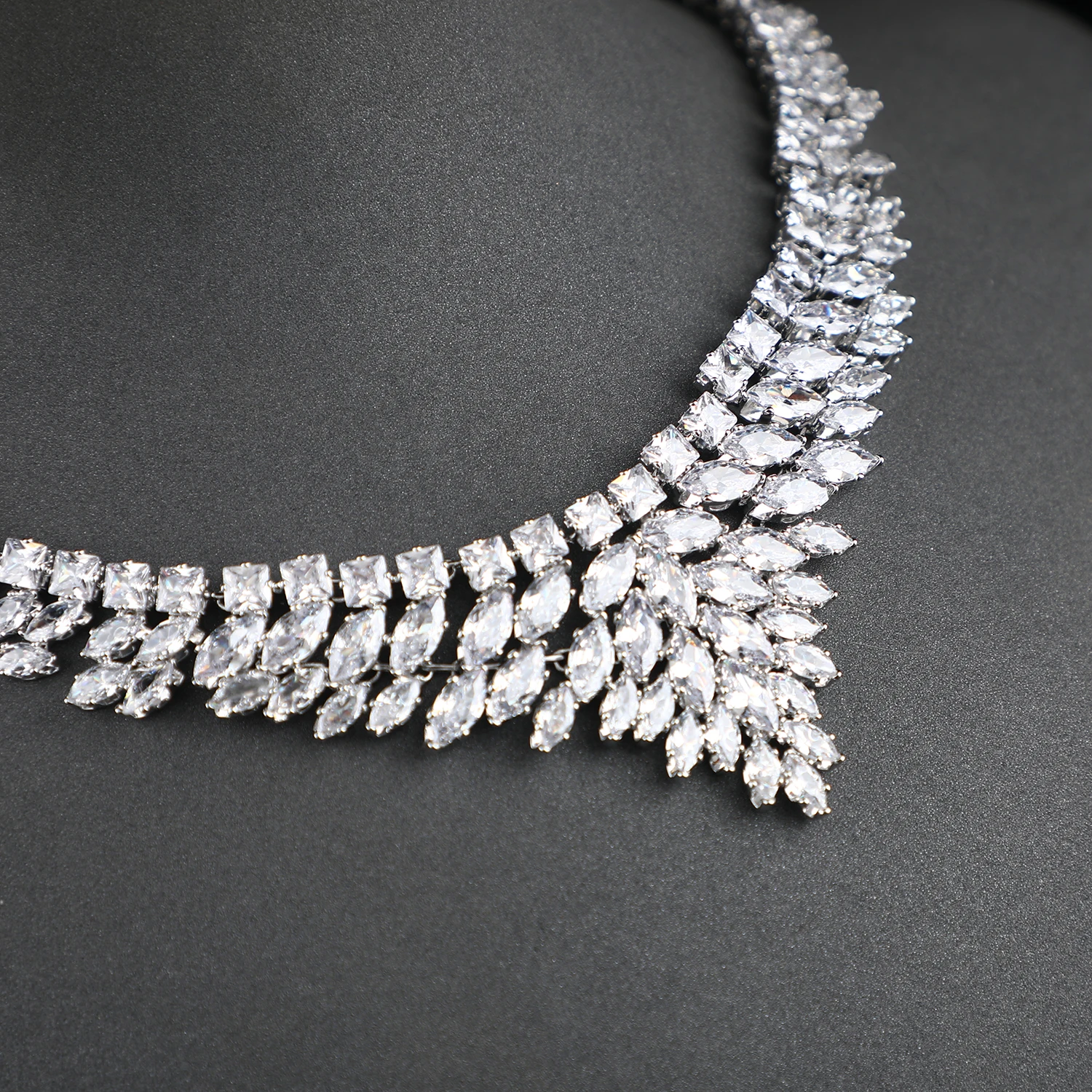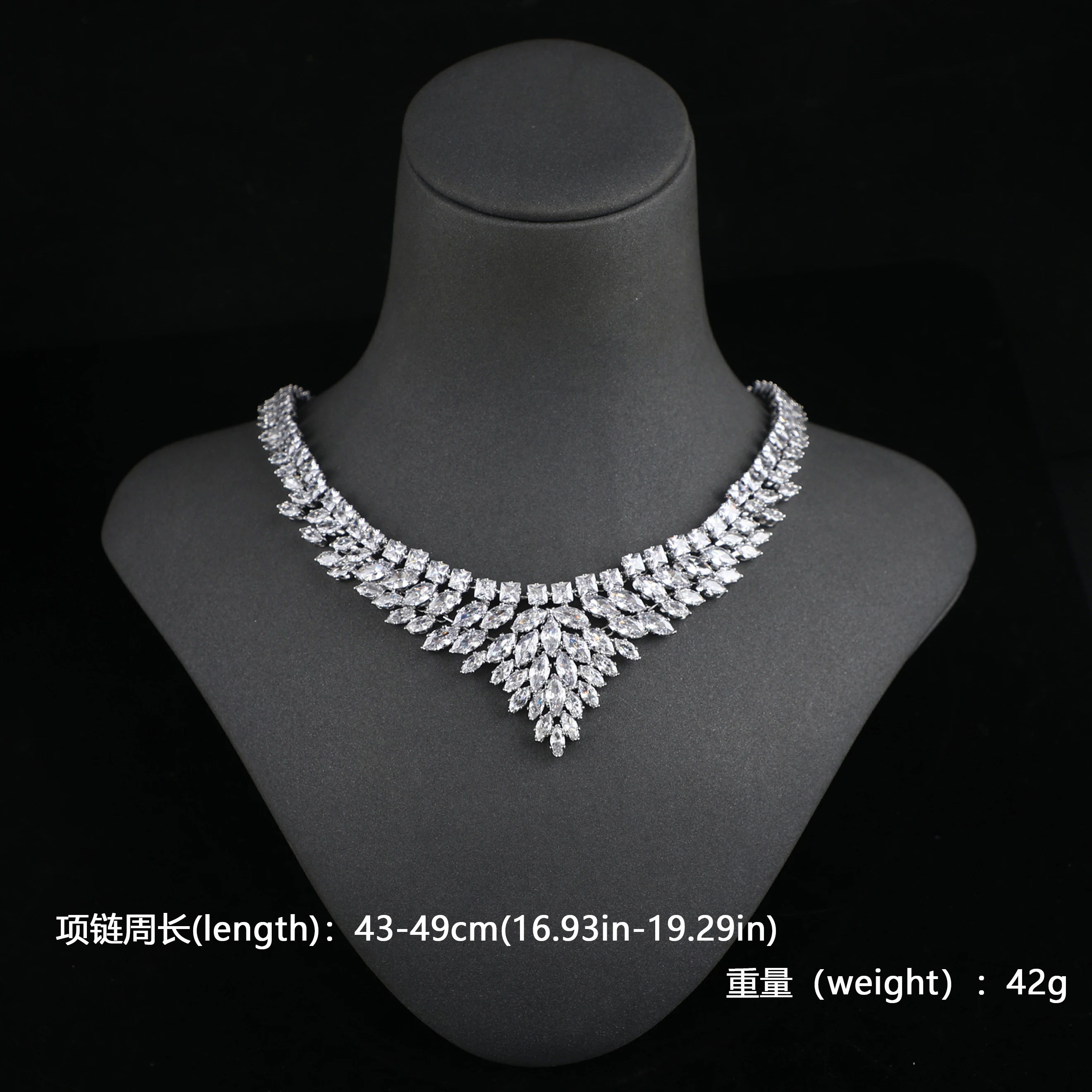 Luxury Noble Zircon CZ Platinum Plated Layered Necklace Set Jewelry Women Dubai Bridal Jewelry Sets Wedding