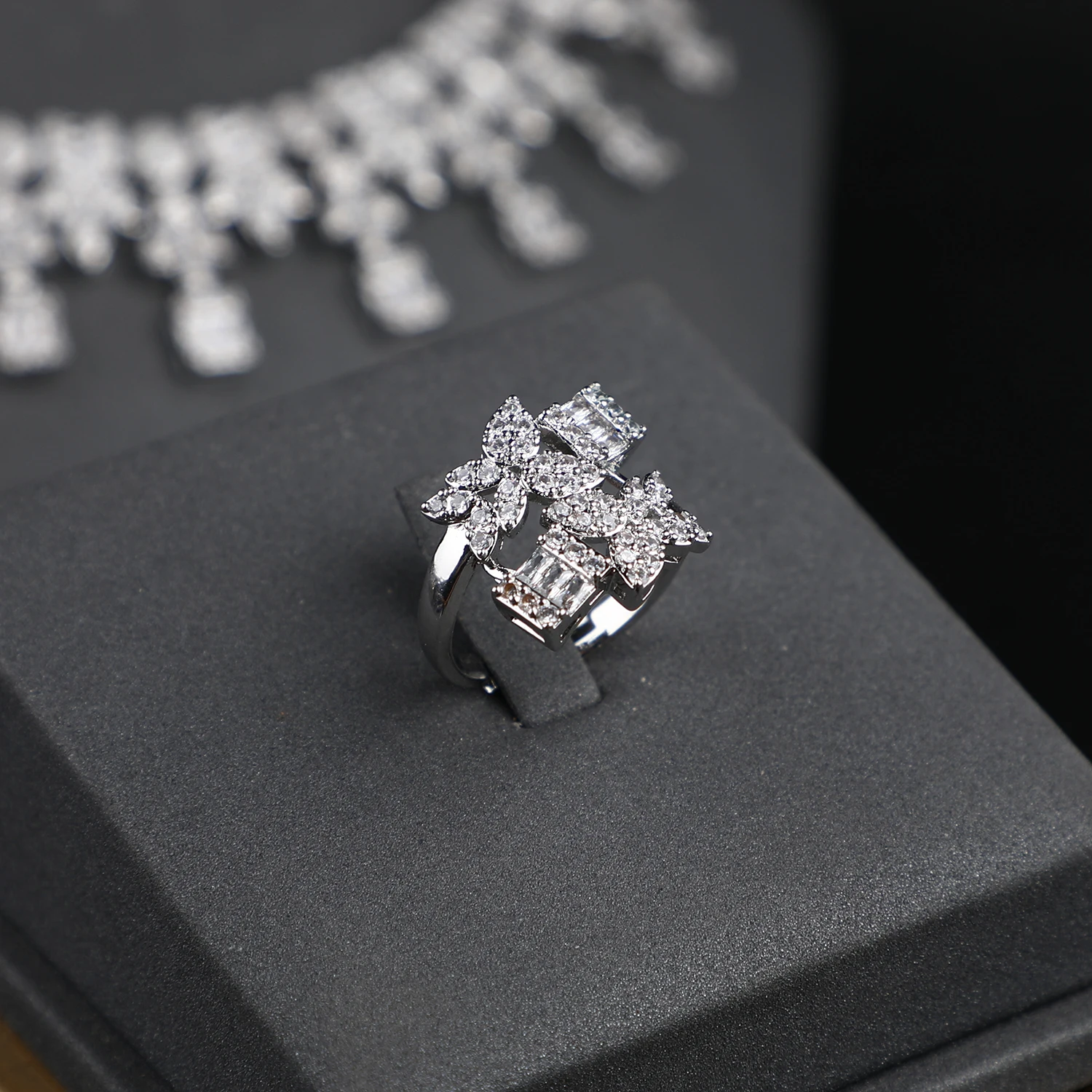Luxury four piece suit cubic zirconia necklace earring bracelet ring set Dubai jewellery wedding bridal jewelry set