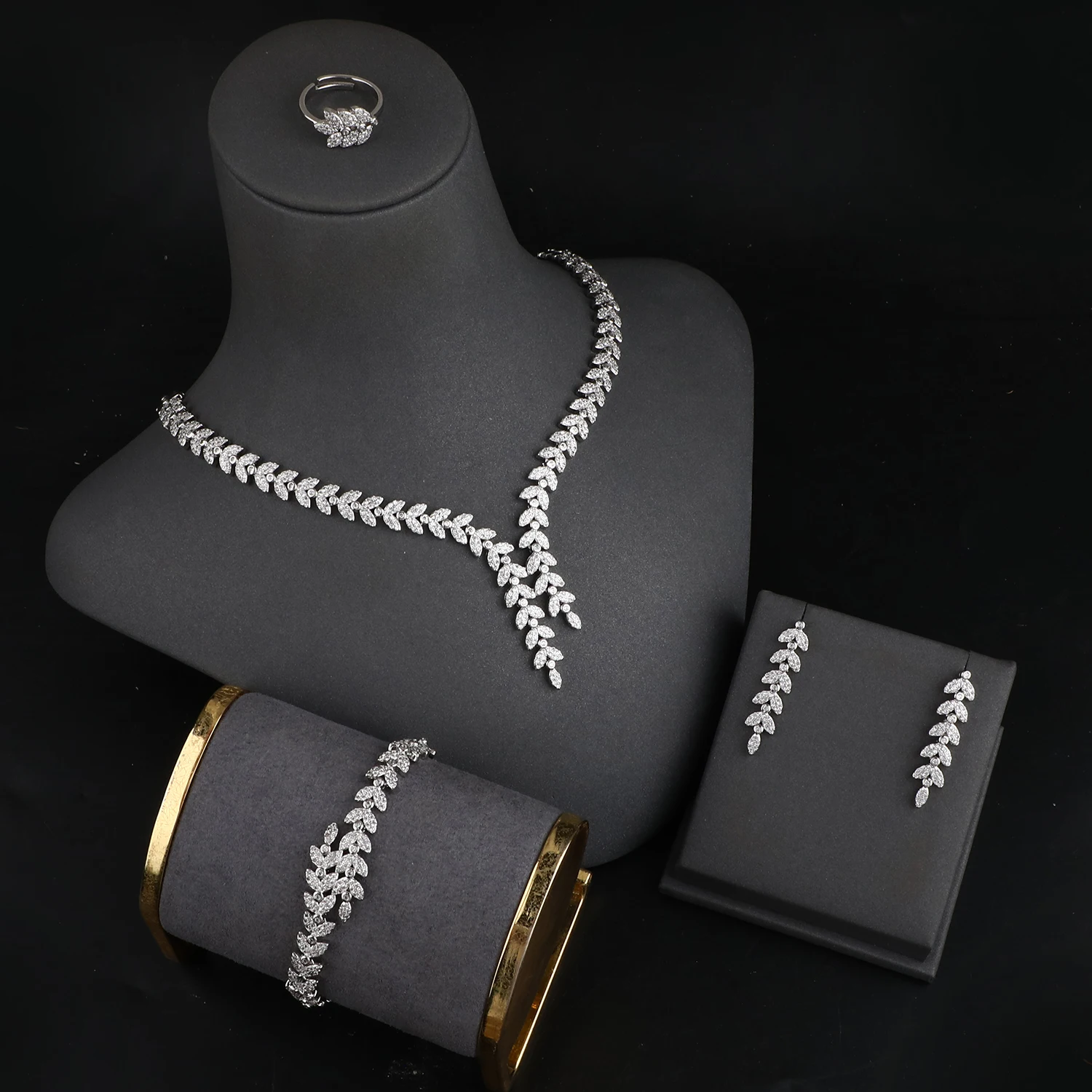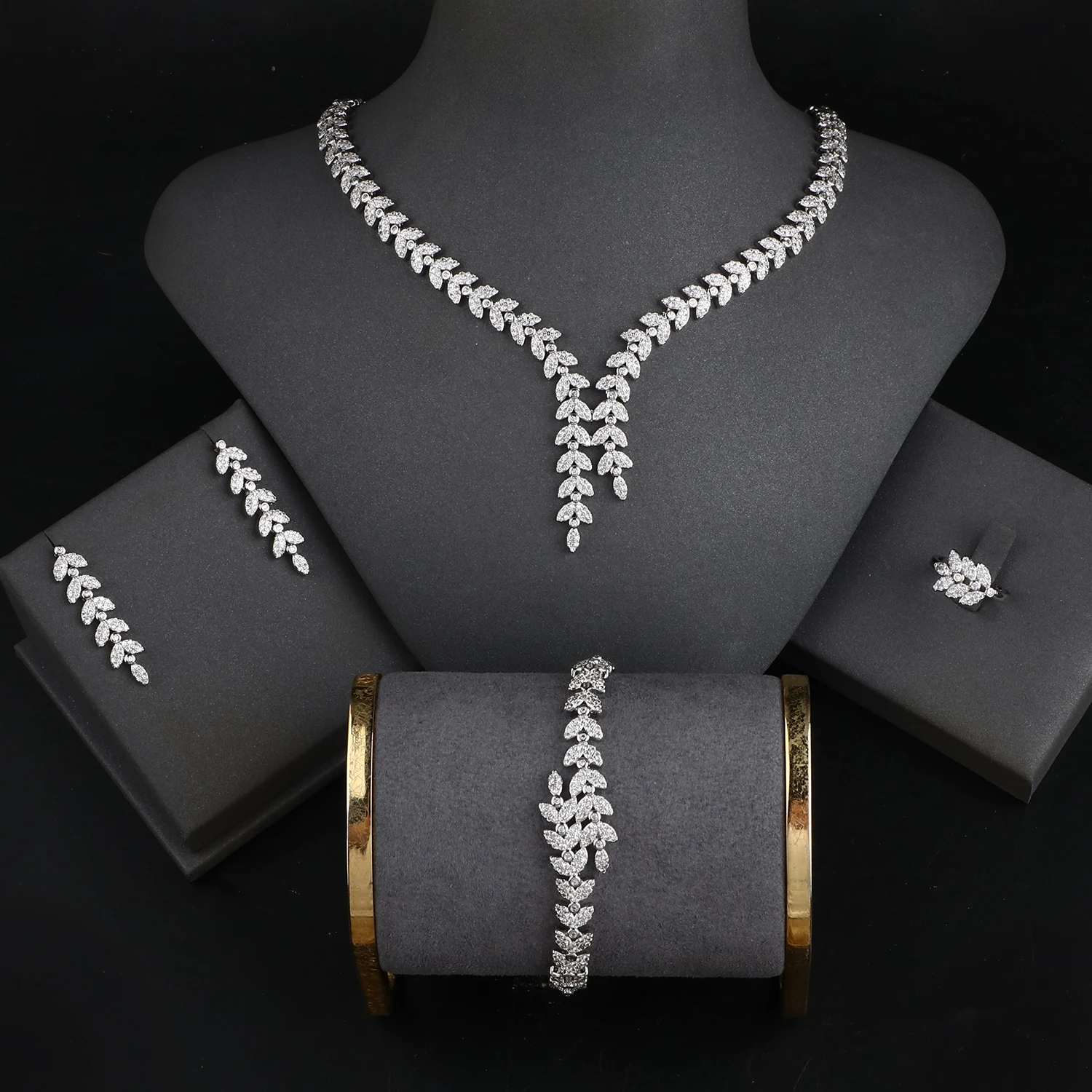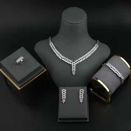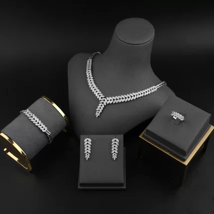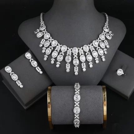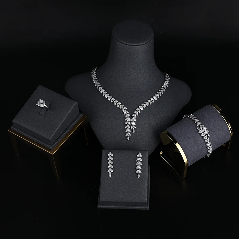 Platinum Plated Jewelry Set Bracelet Ring Earrings And Necklace Set in Jewellery Sets Fashion Luxurious Zircon Jewelry Display