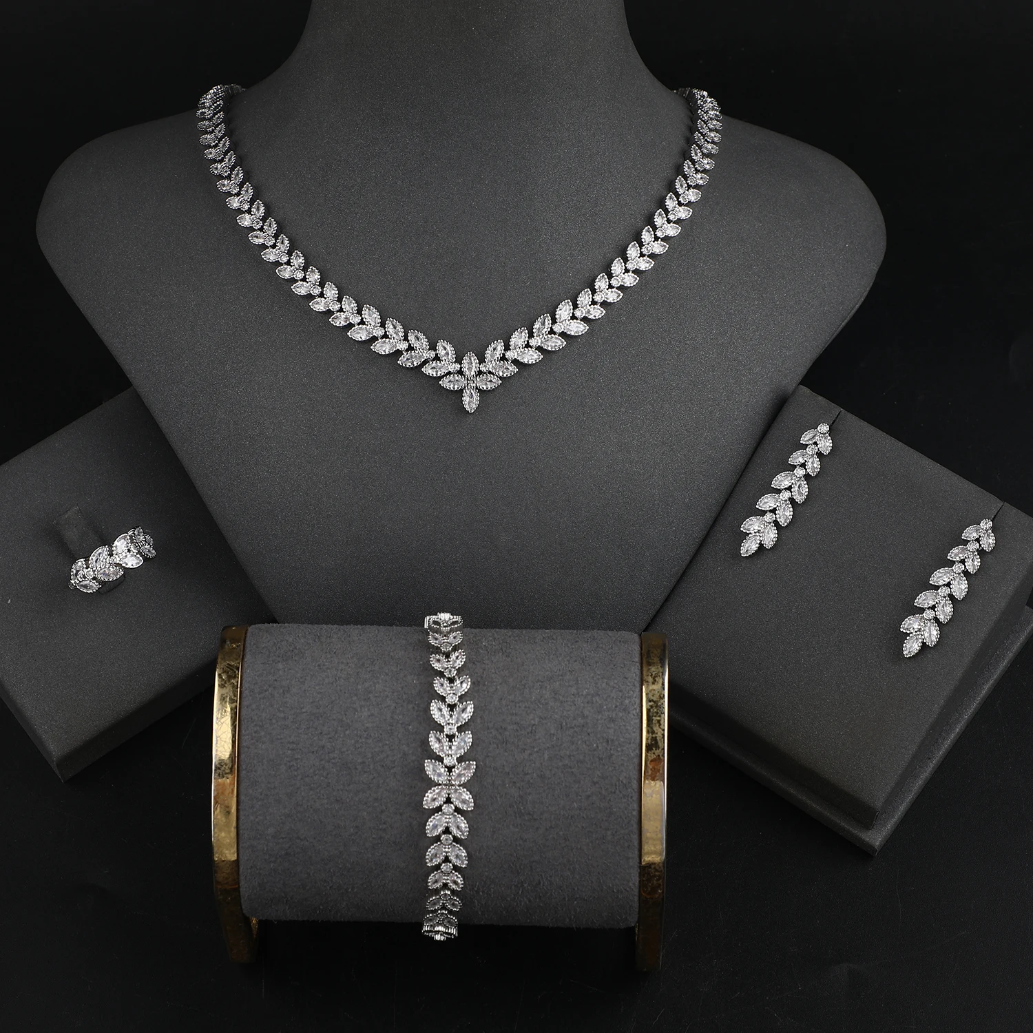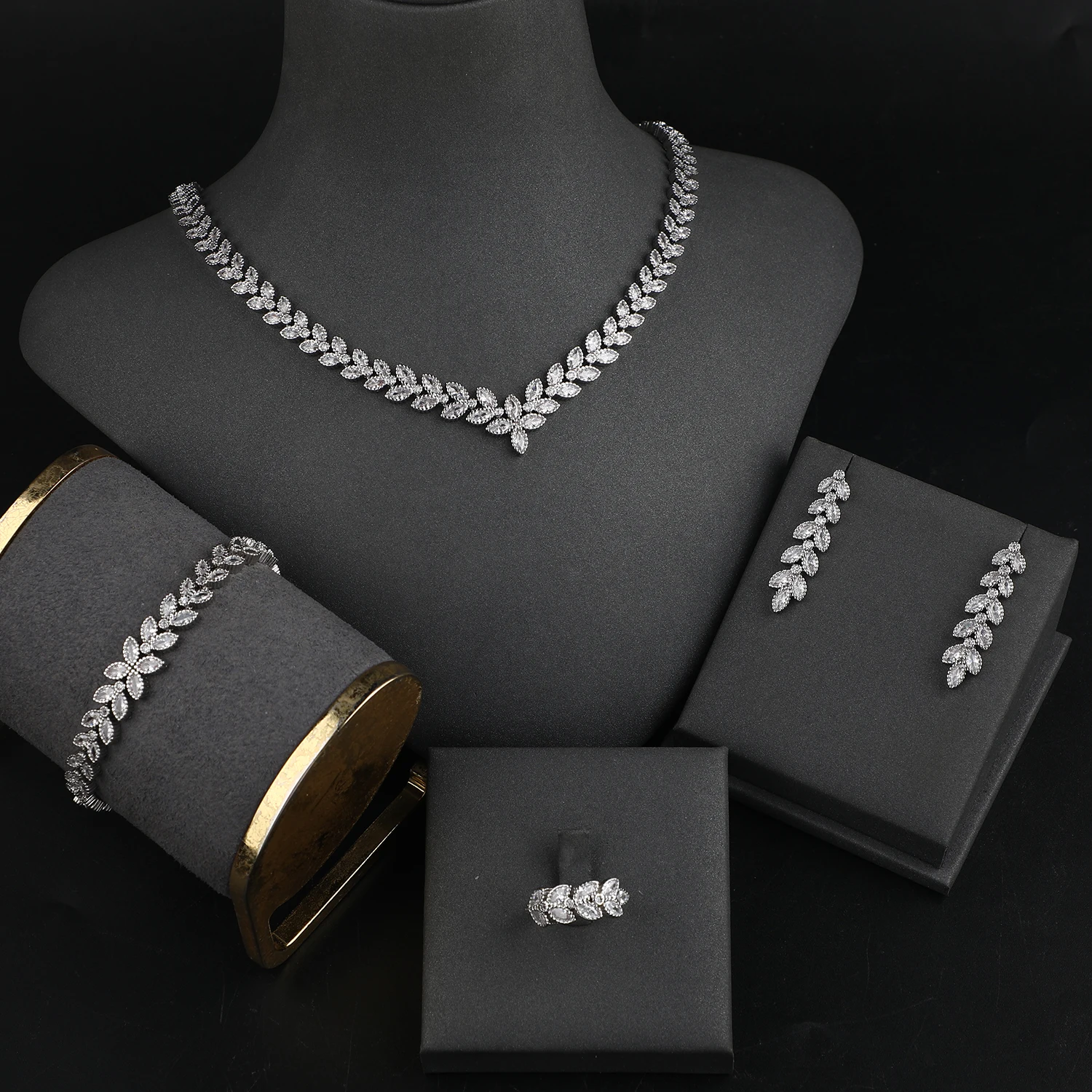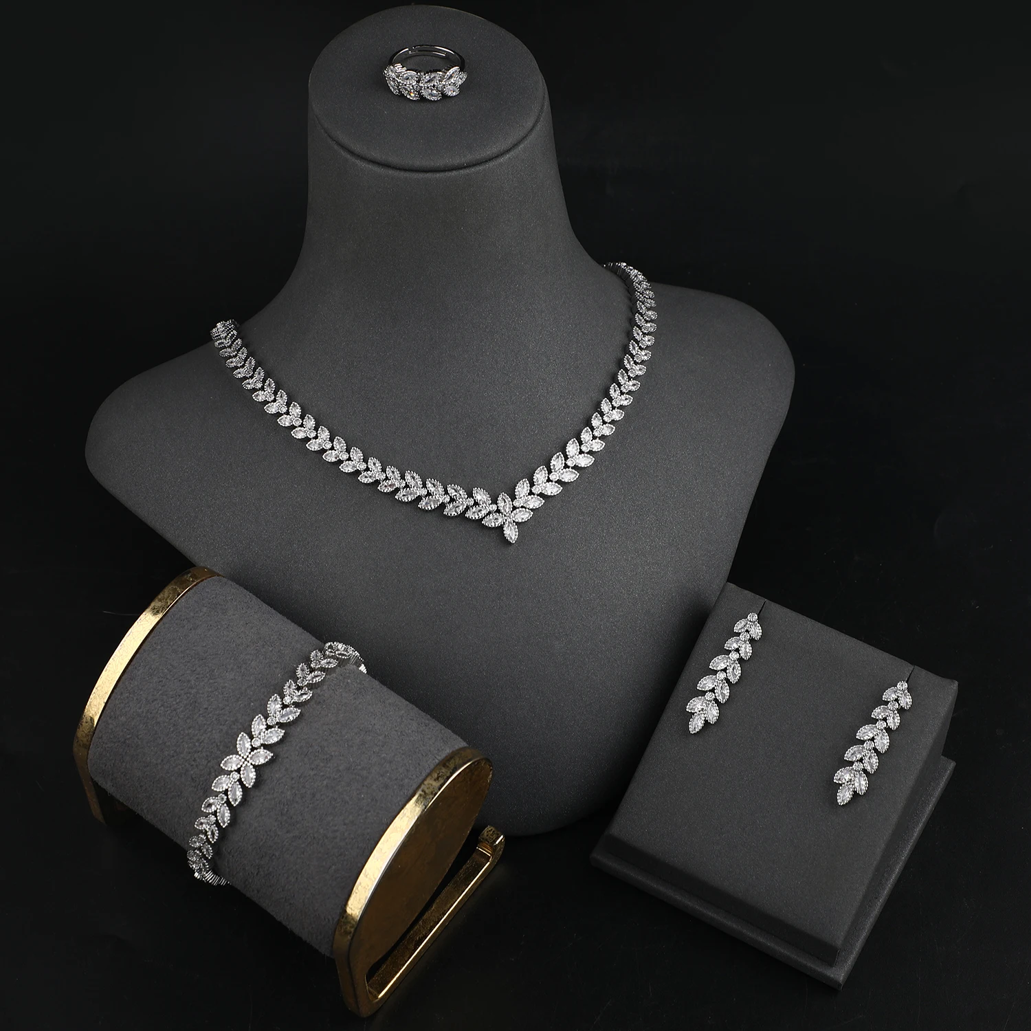 Luxury Platinum Plated non tarnish Jewellery Women Zircon Bracelet Ring Earring Necklace 4-piece Set Wedding Bridal Jewelry Sets