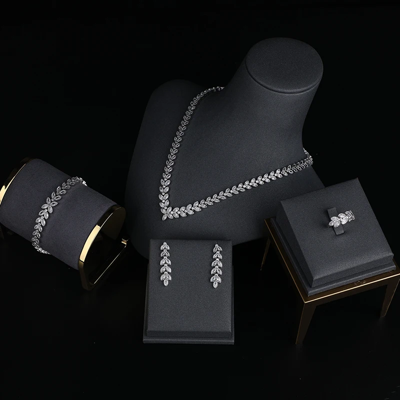 Platinum Plated Bracelet Ring Earrings and Necklace Set Women Bridal Jewellery Sets Luxury Fashion Jewelry Direct Sales
