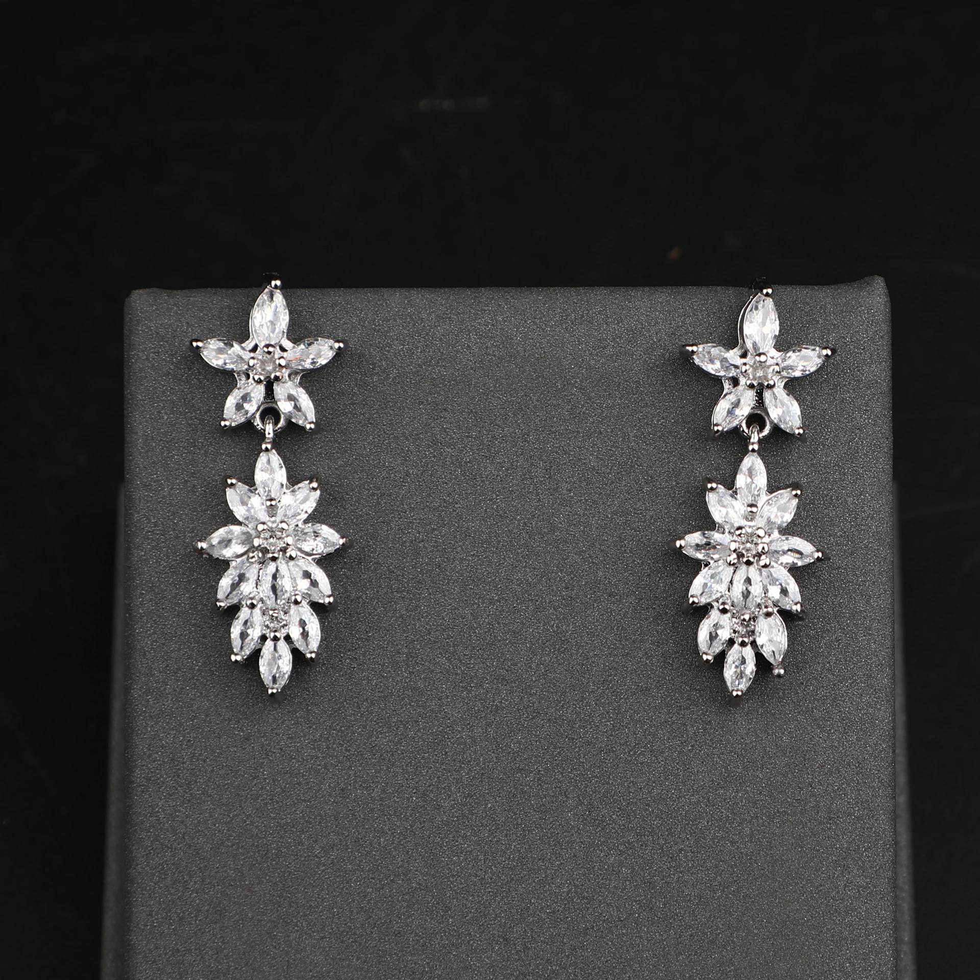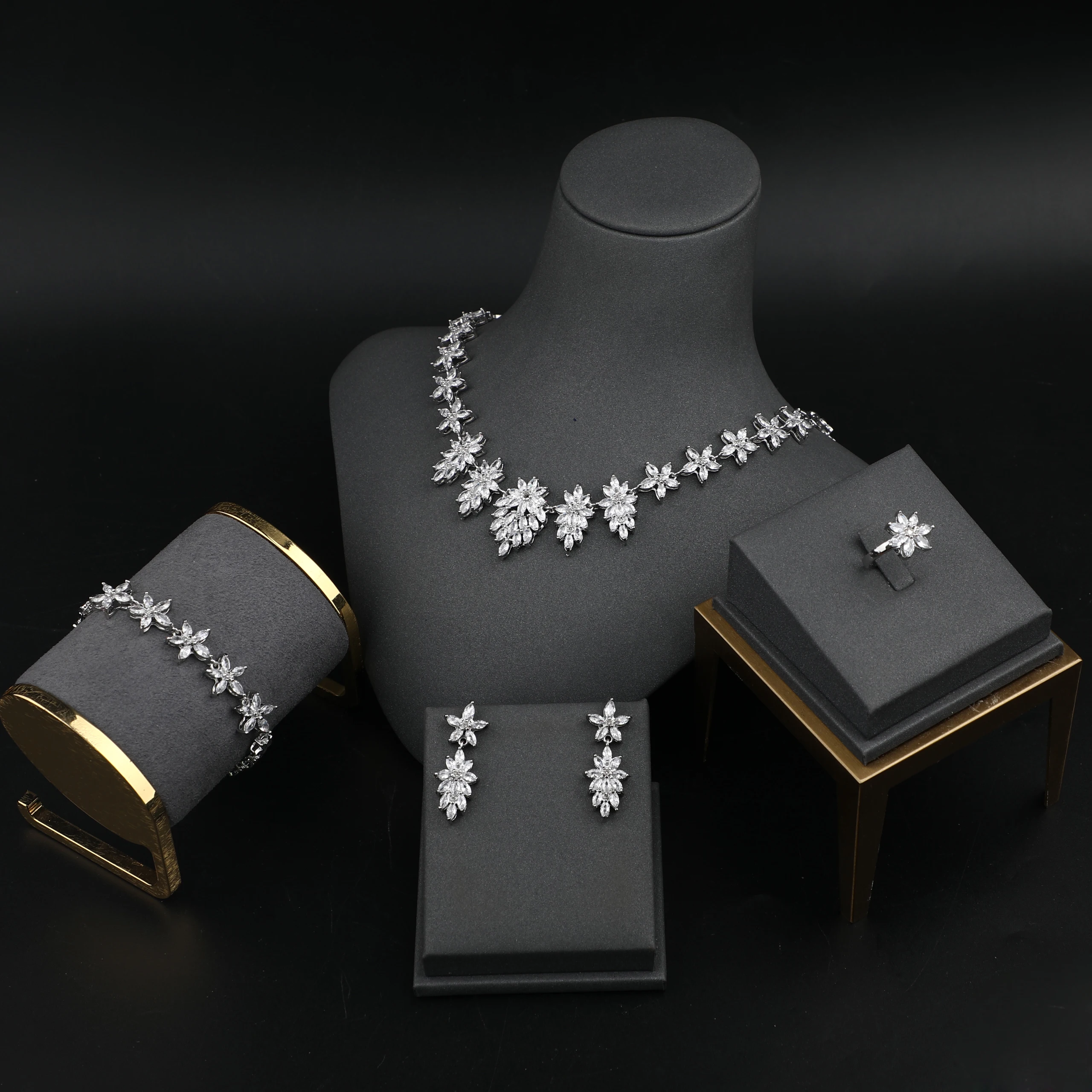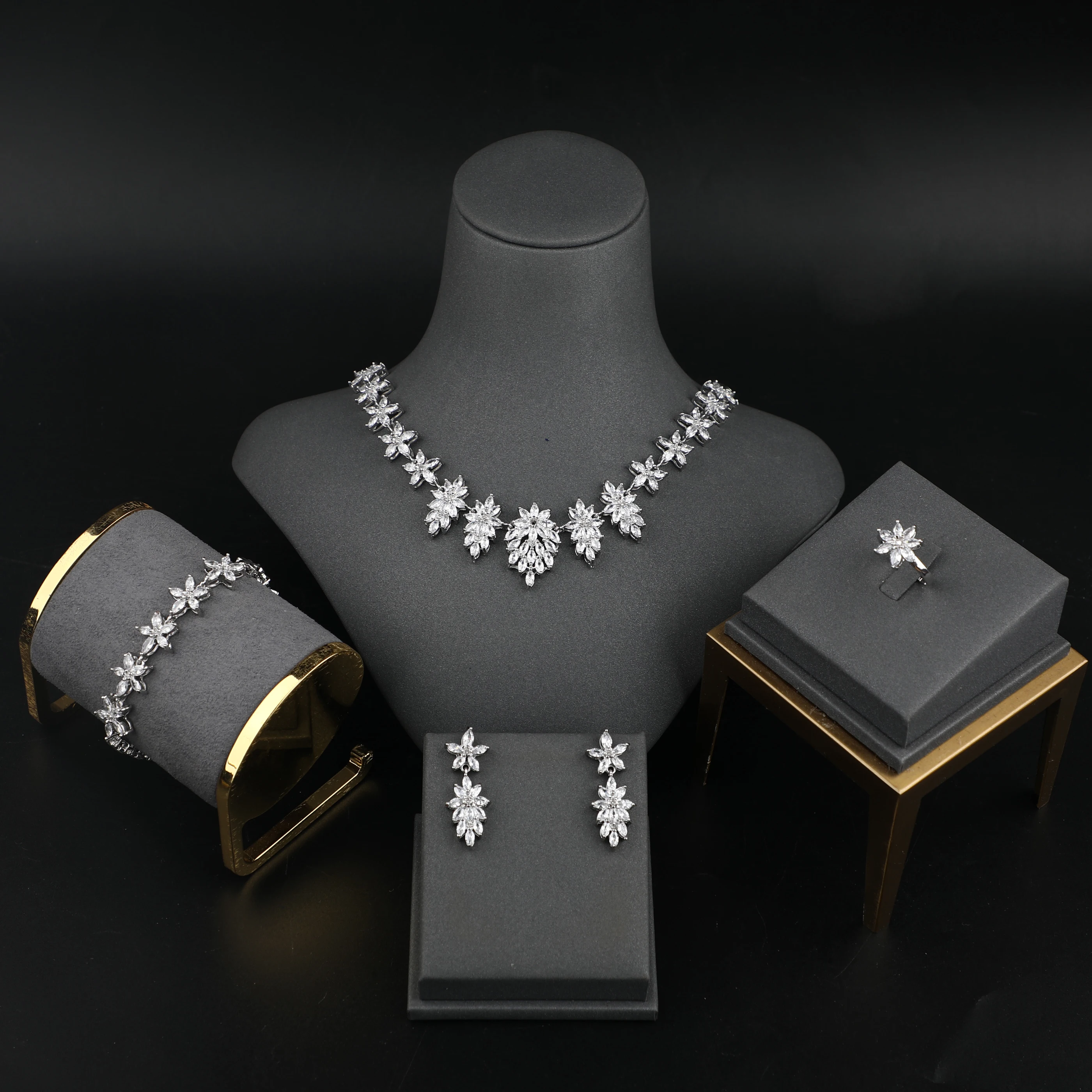 Platinum Plated Luxury Zircon Jewellery Sets Bracelet Ring Earring and Necklace 4-piece Set Wedding Bridal Jewelry Set