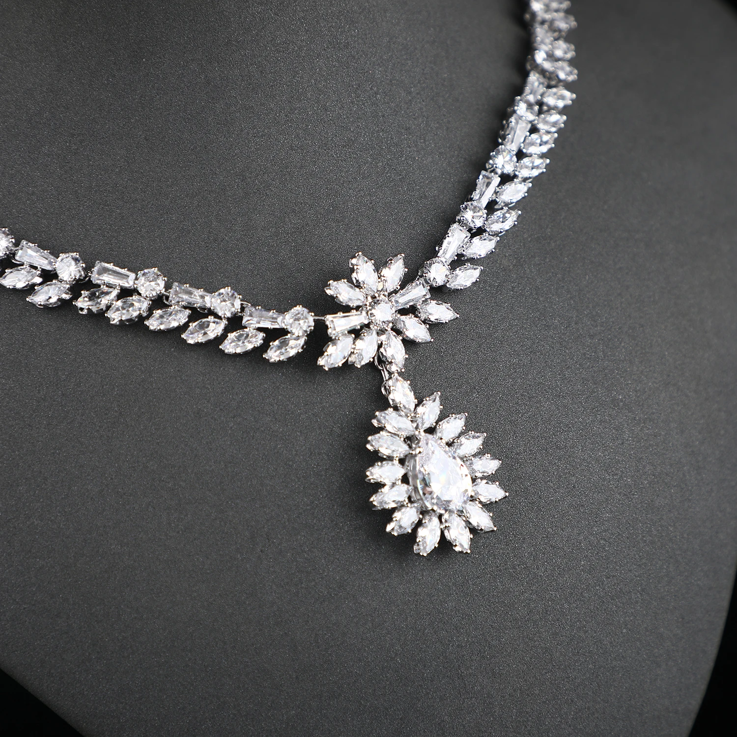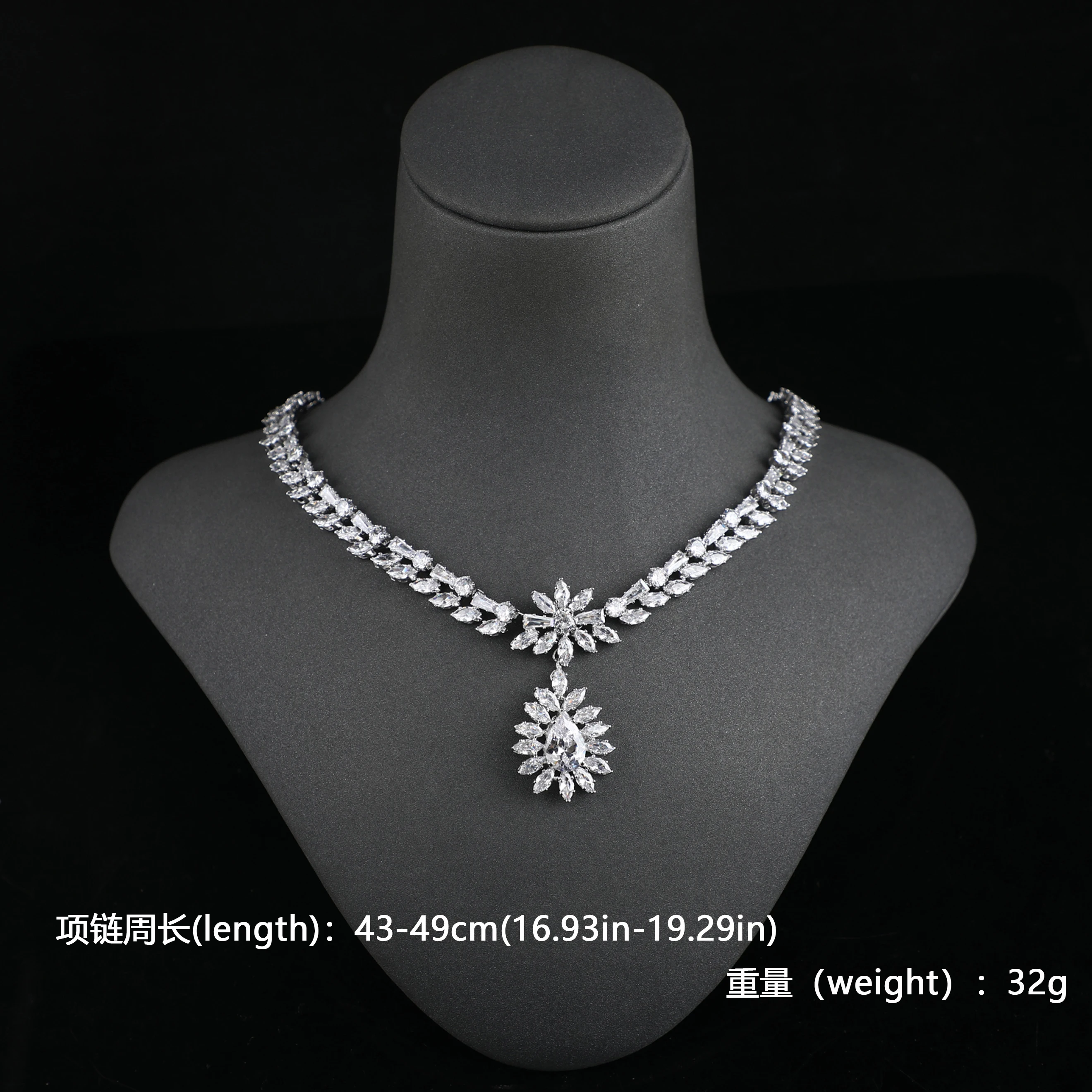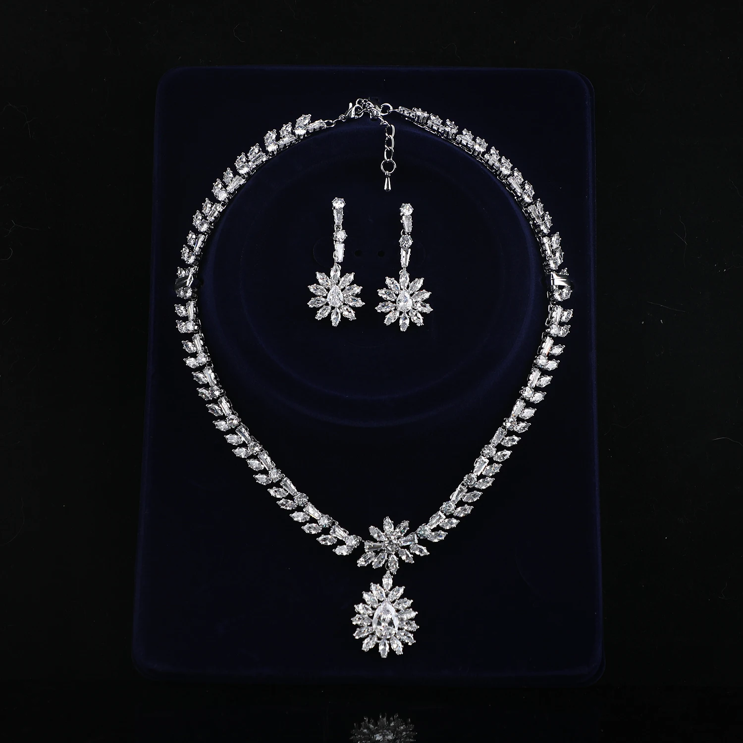 Platinum Plating Tarnish Free Jewelry Luxury Zircon Necklace And Earring Sets Women Bridal Jewelry Sets