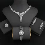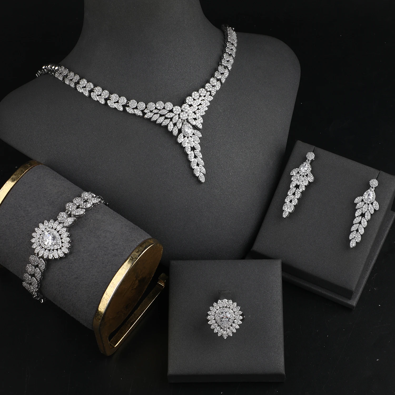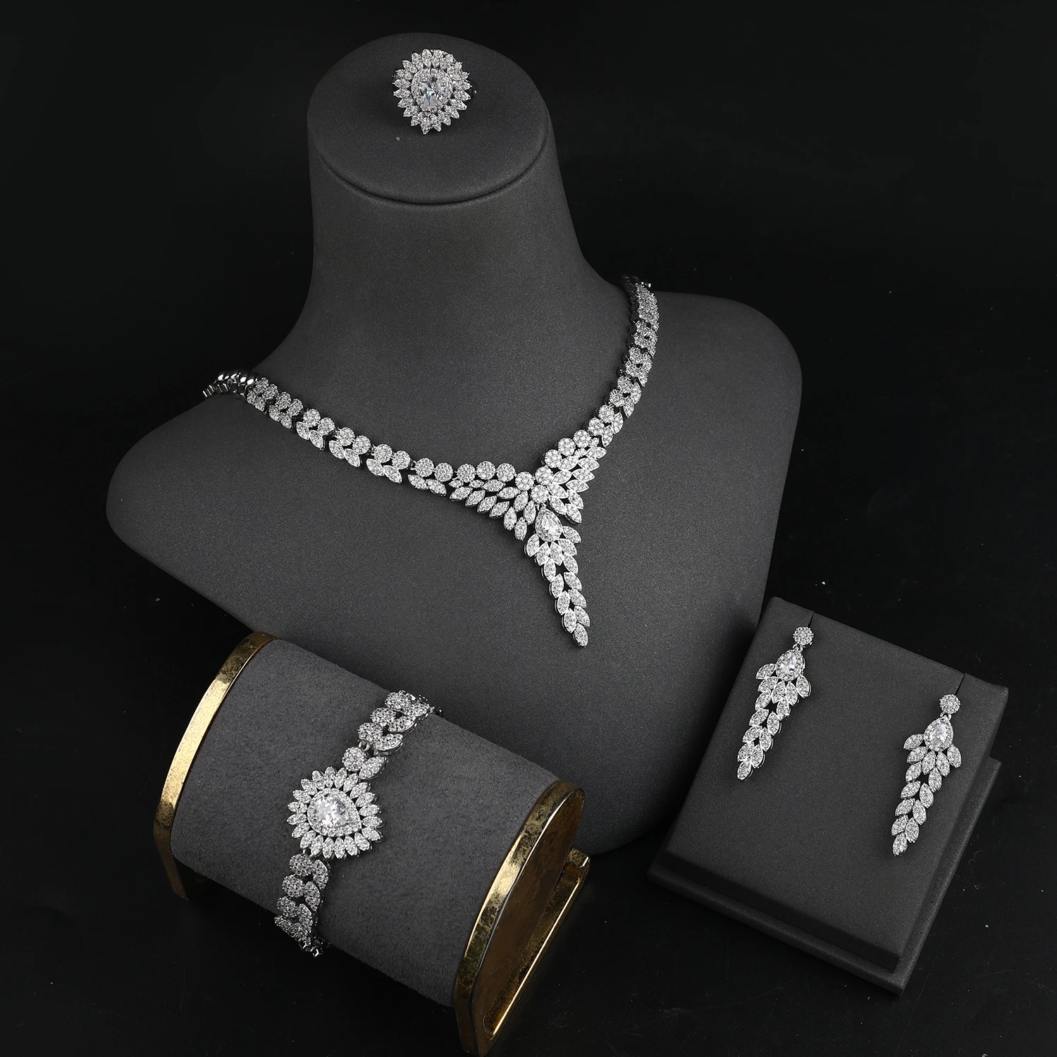 Luxury Bling Full Zircon 4-piece Necklace Sets Dubai Jewellery High Quality Tarnish Free Wedding Bridal Jewelry Sets