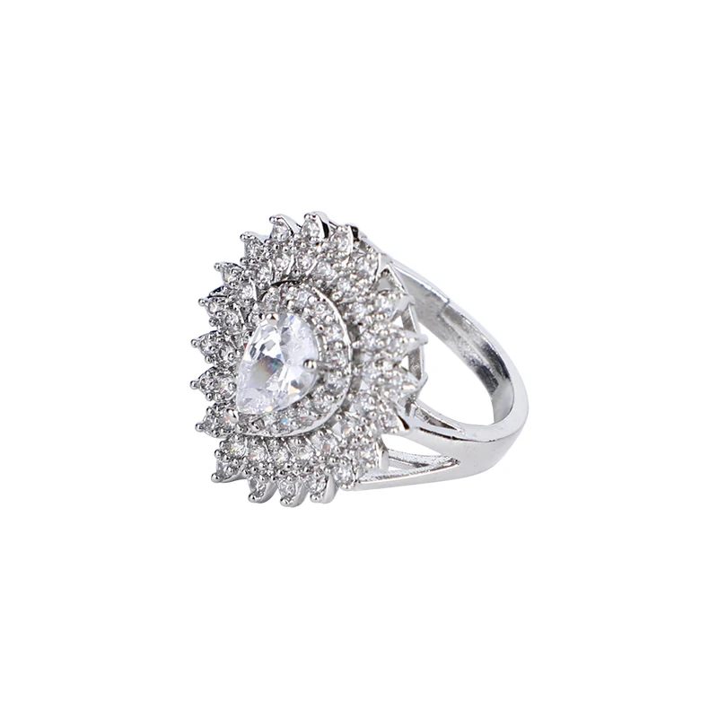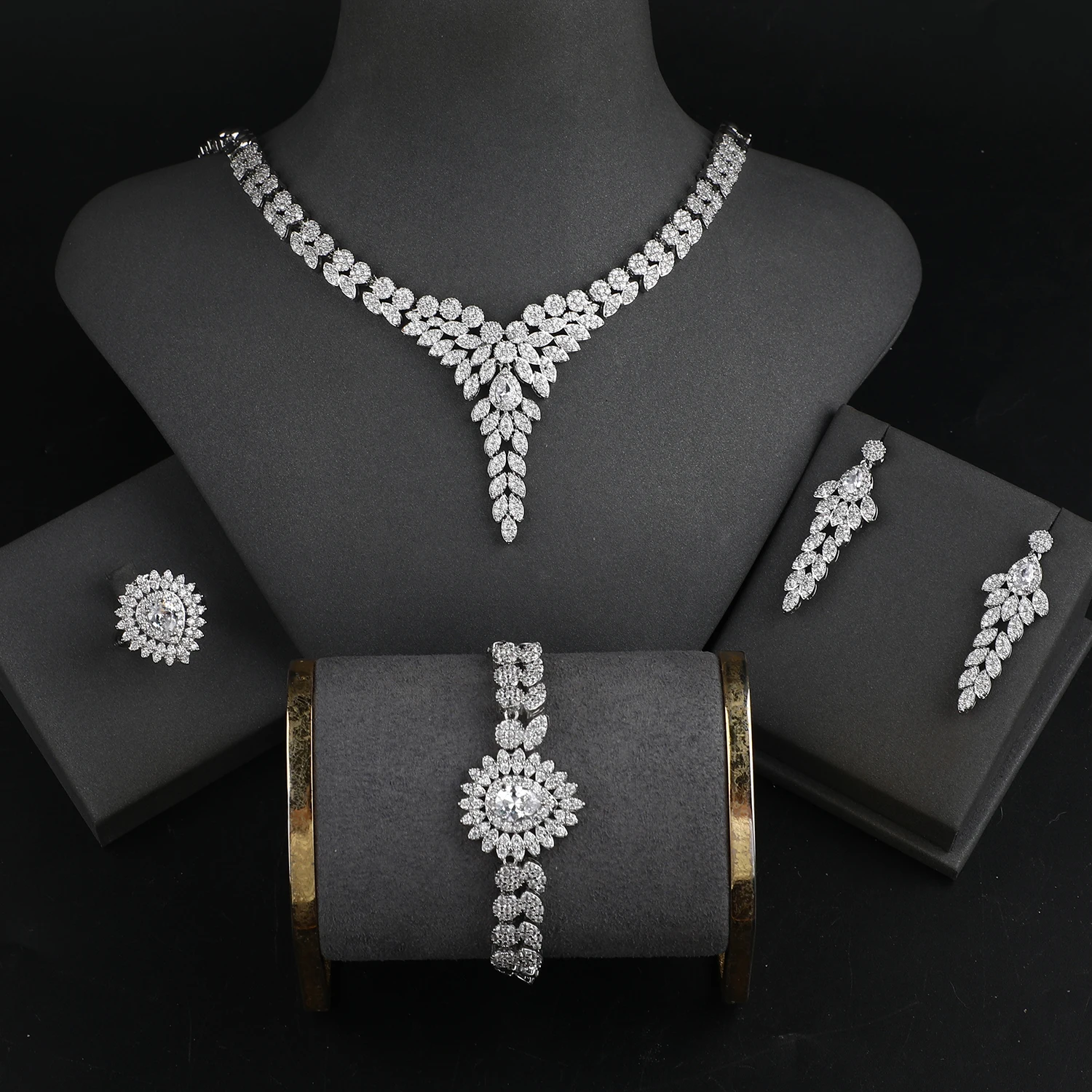 Trendy luxury Zircon Jewelry Platinum Plated Bridal Jewelry Set Bracelet Ring Earring and Necklace Jewellery Set Fashion Women