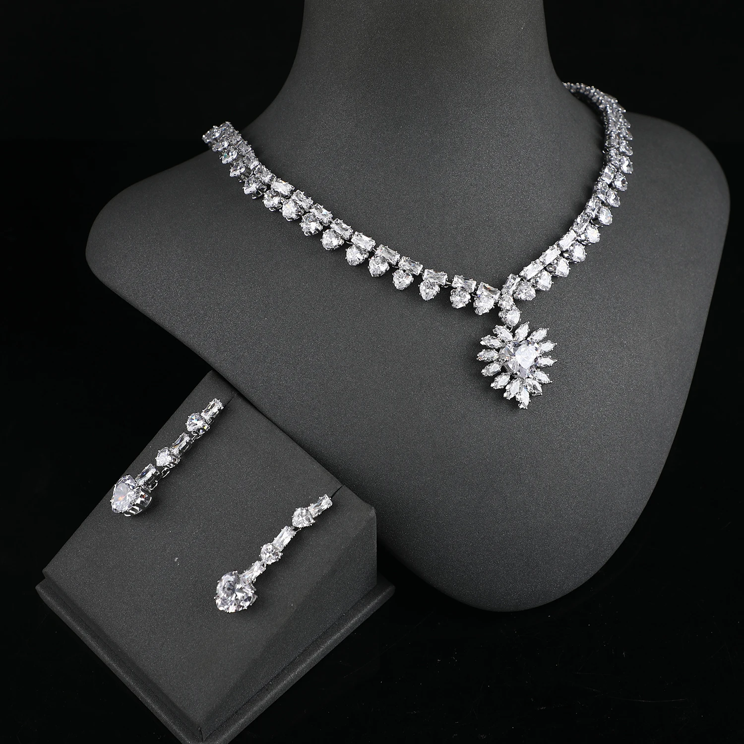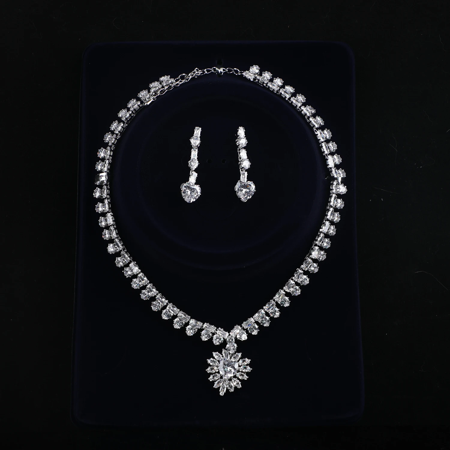 Luxury Zircon Pendant Necklace Zirconia Jewelry Charm Diamond Earrings And Necklace Sets Women Jewellery Set Gold Filled Plated