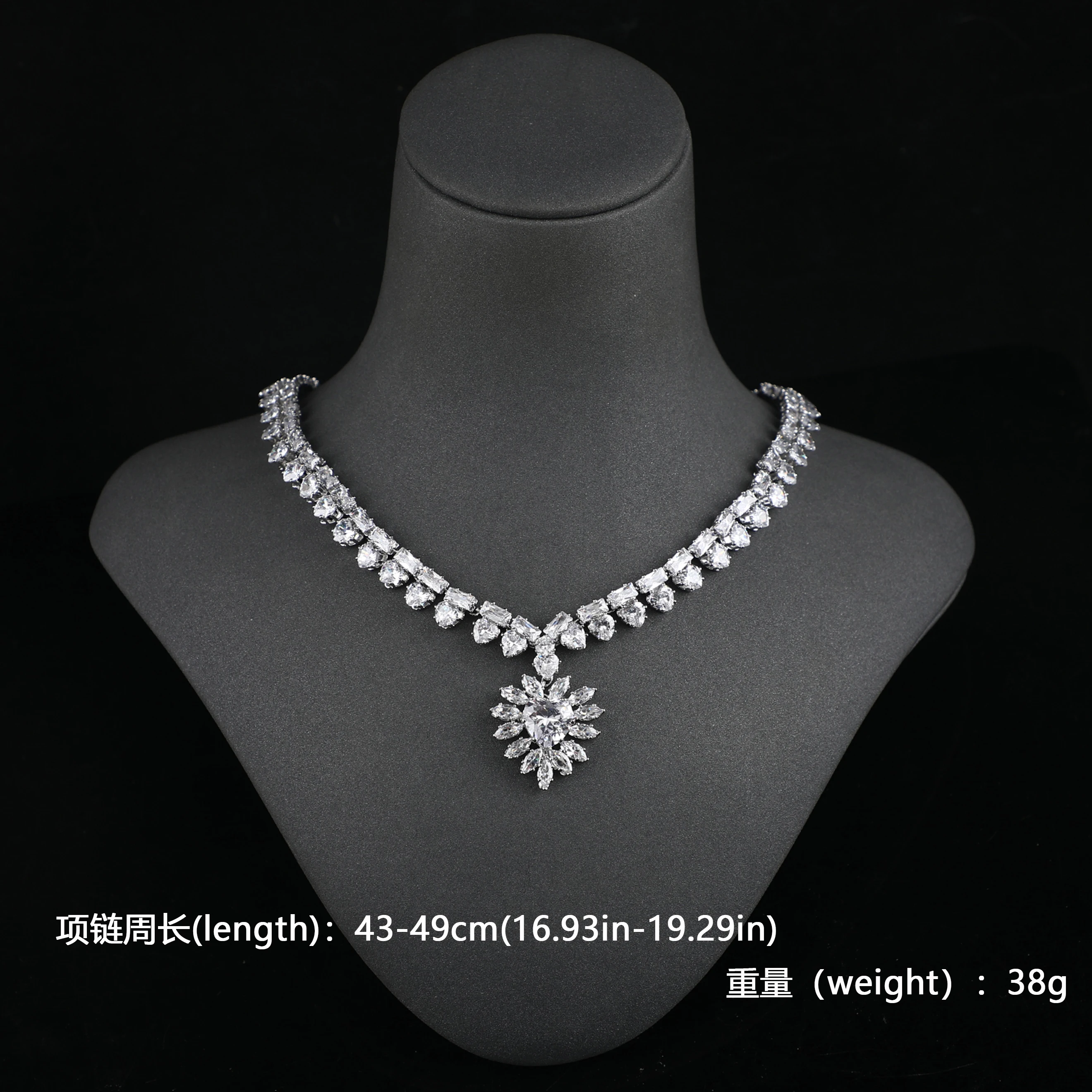 Luxury Noble Zircon CZ Platinum Plated Layered Necklace Set Jewelry Women Dubai Bridal Jewelry Sets Wedding