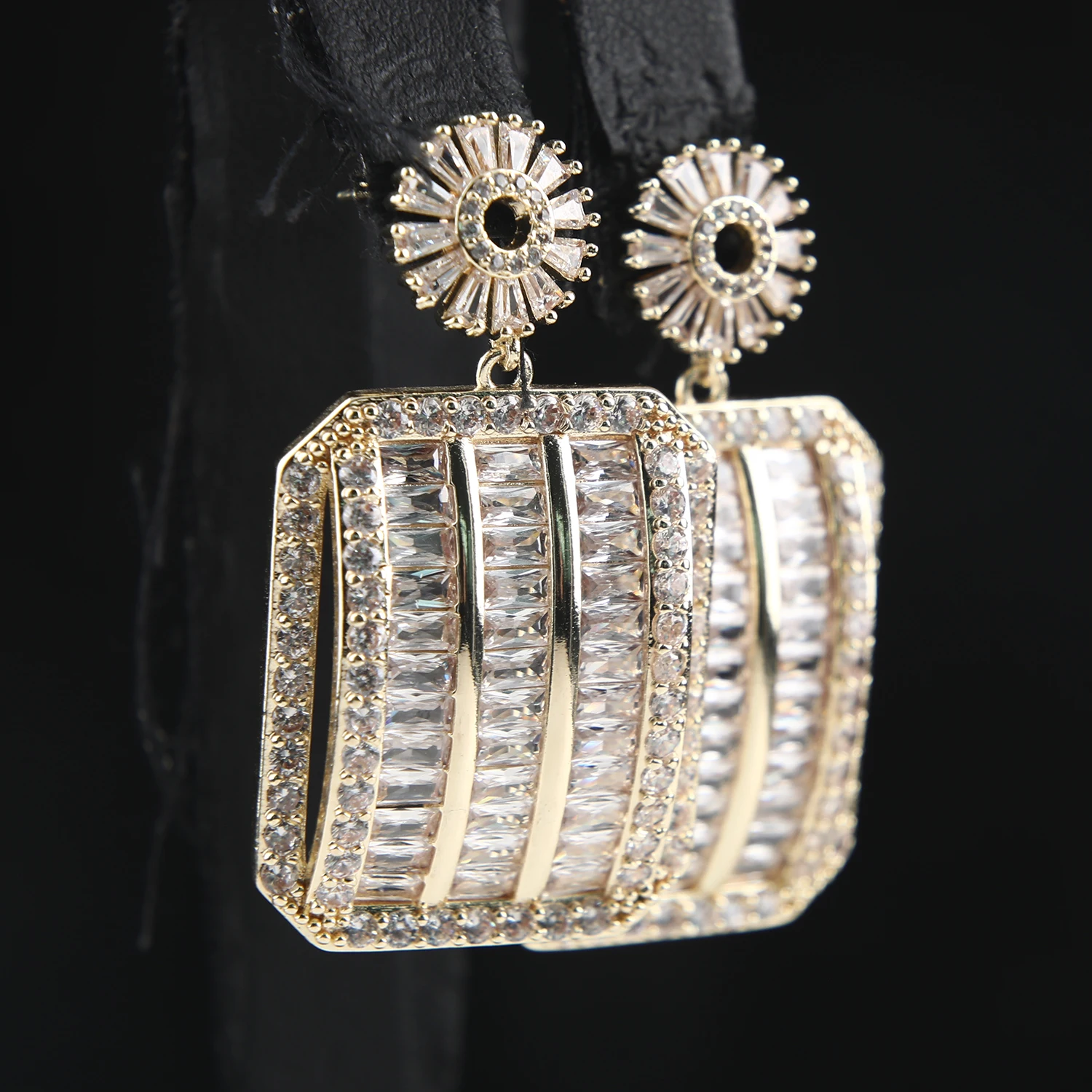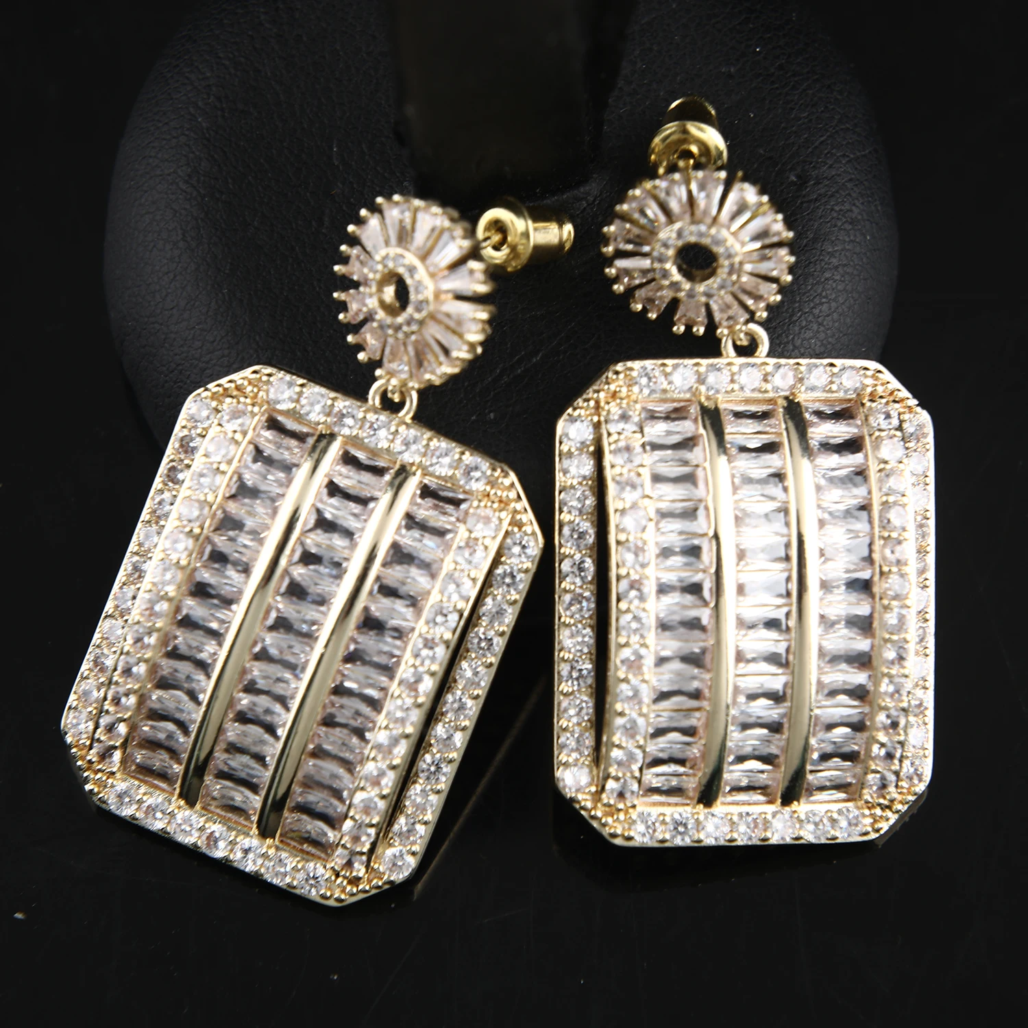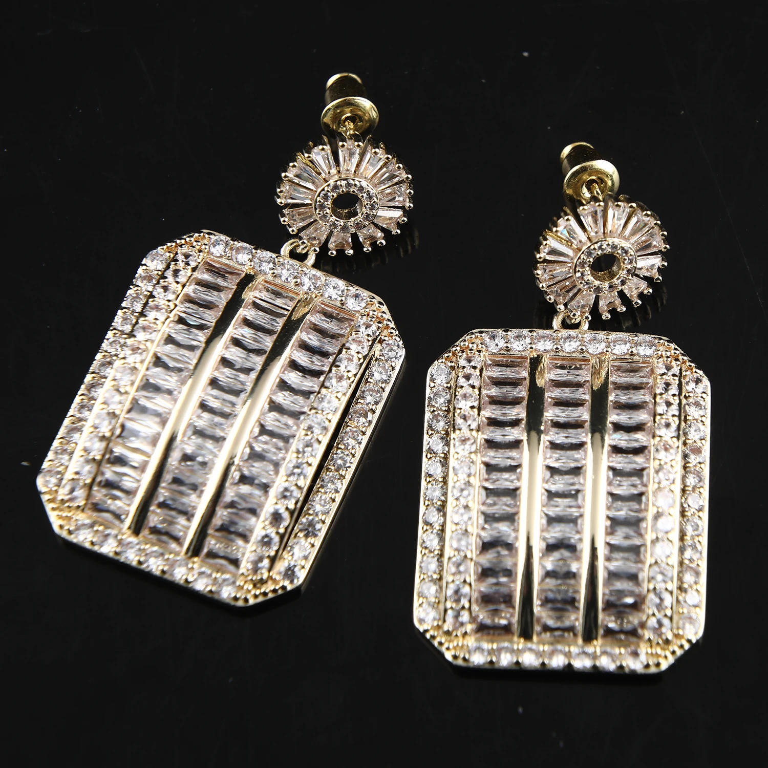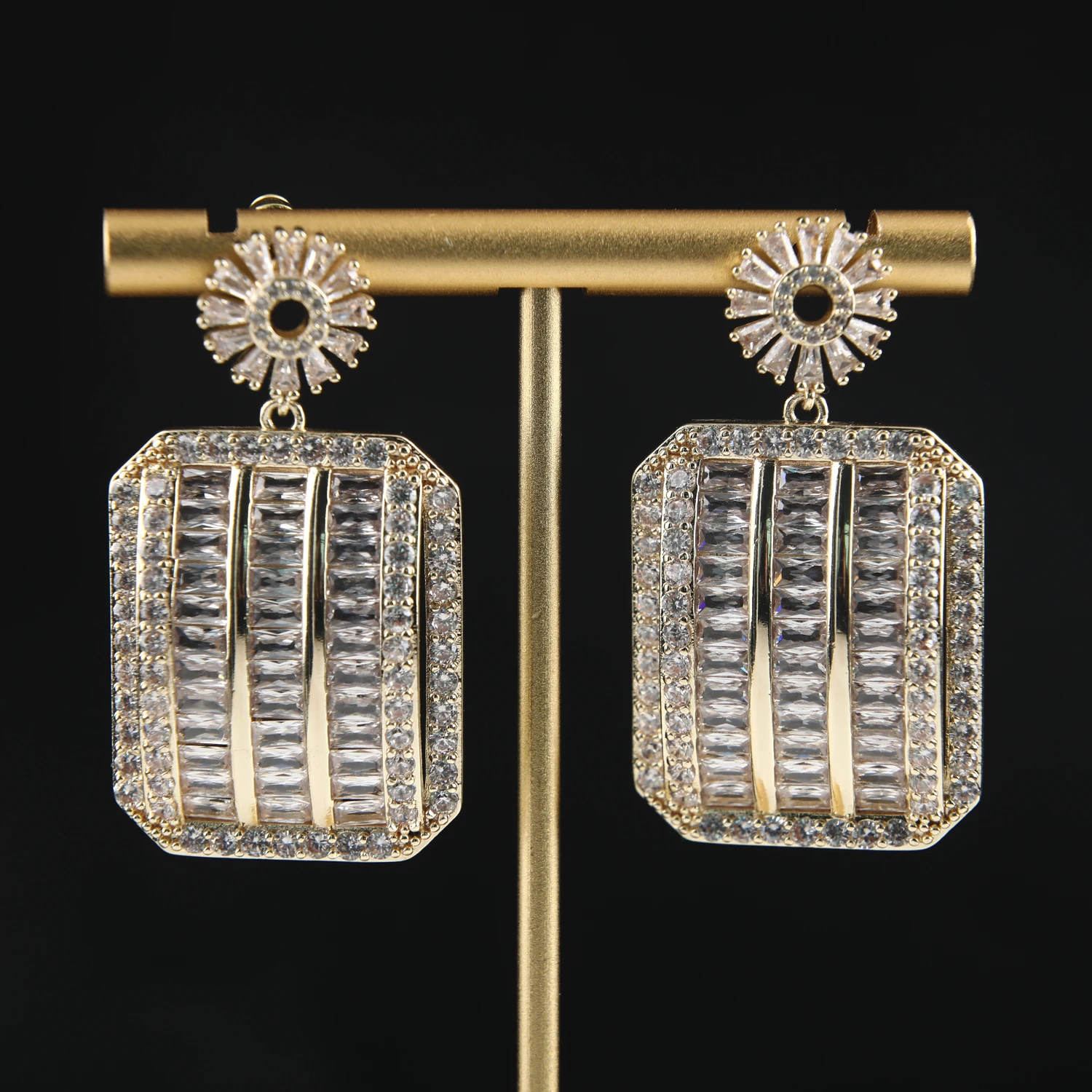 Home Fashion Jewelry 18K Gold Plated Luxury CZ Rectangular Pendant Zirconia Earrings Women Fashion Statement Earrings