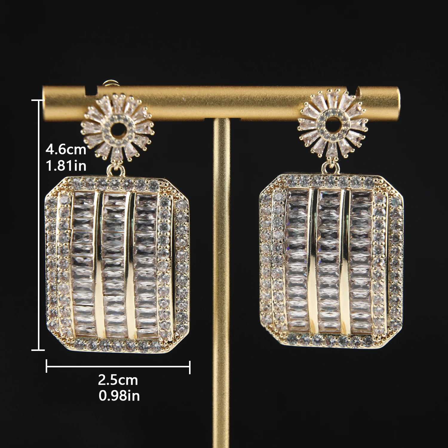 18K Gold Plated Luxury CZ Rectangular Pendant Zirconia Earrings Women Fashion Statement Earrings