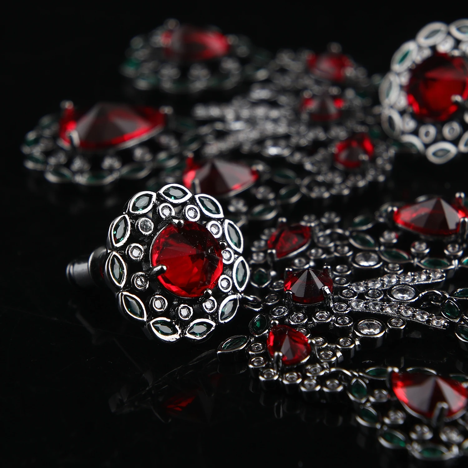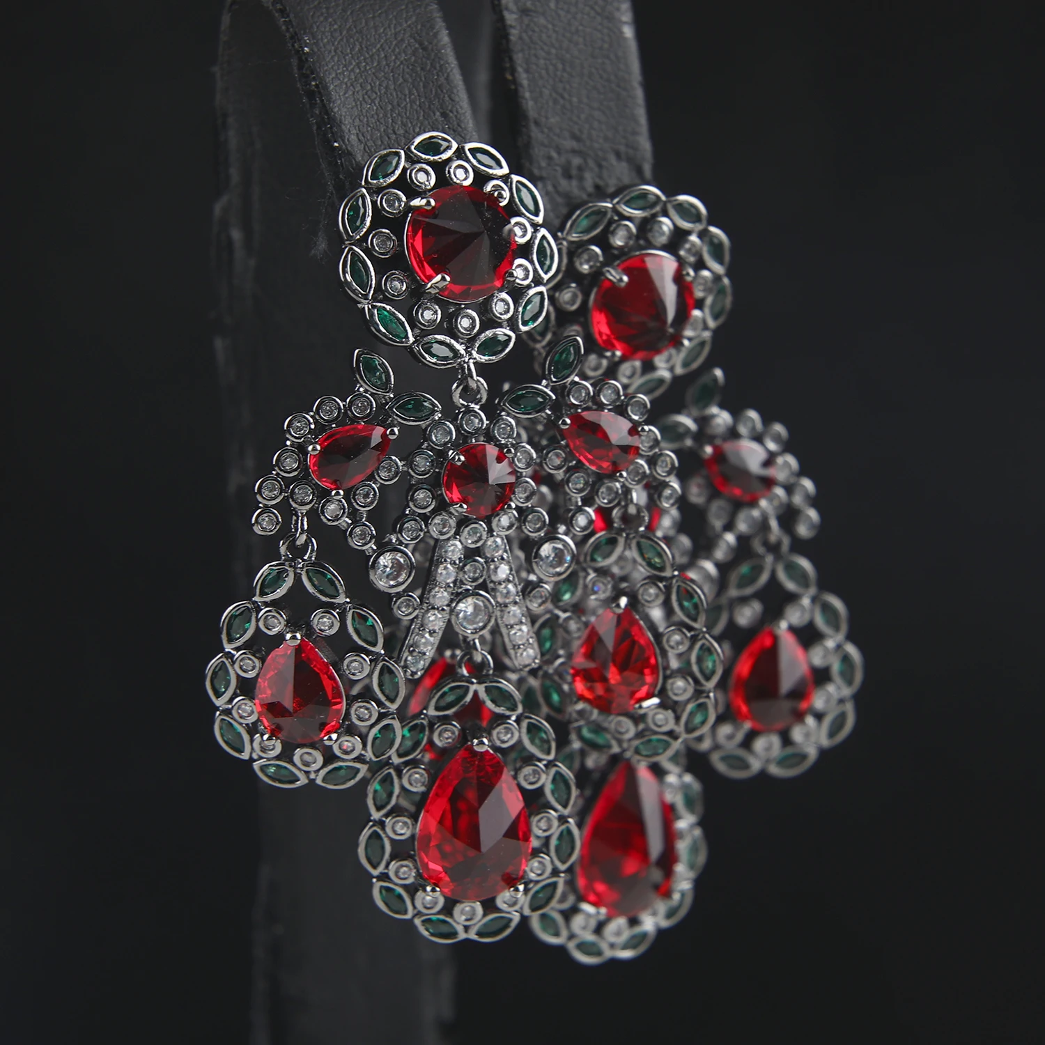 Black Gun Plated Indian Chandelier Earrings Zircon Drop Jewelry Big Earrings Women