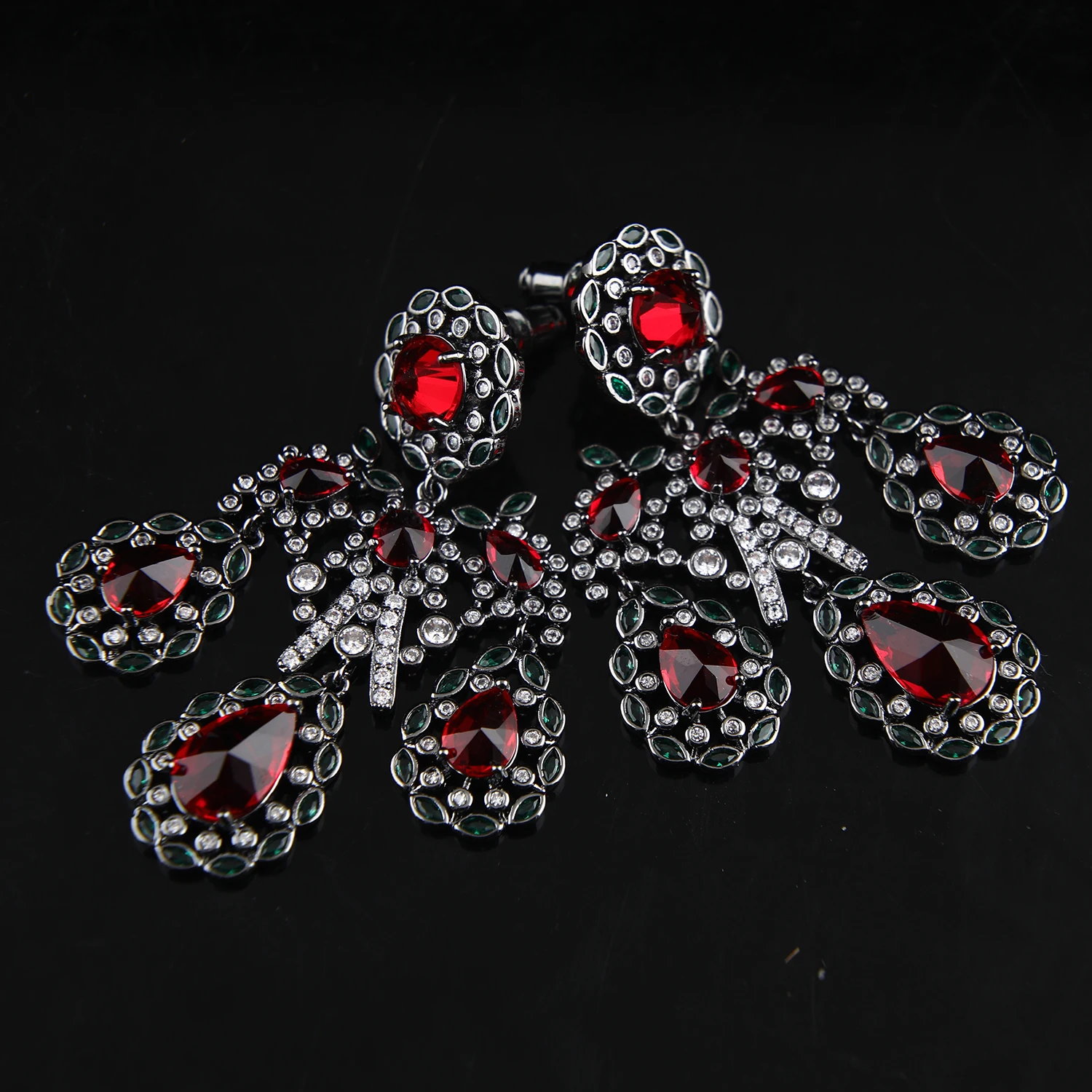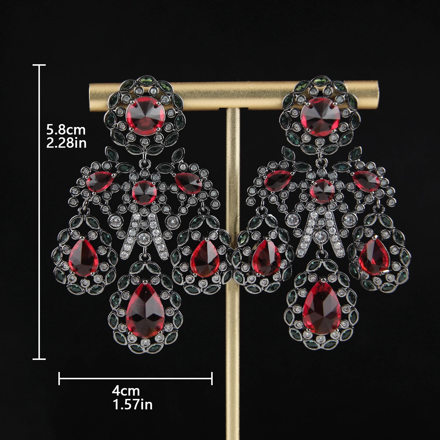 Home Fashion Jewelry Black Gun Plated Indian Chandelier Earrings Zircon Drop Jewelry Big Earrings Women