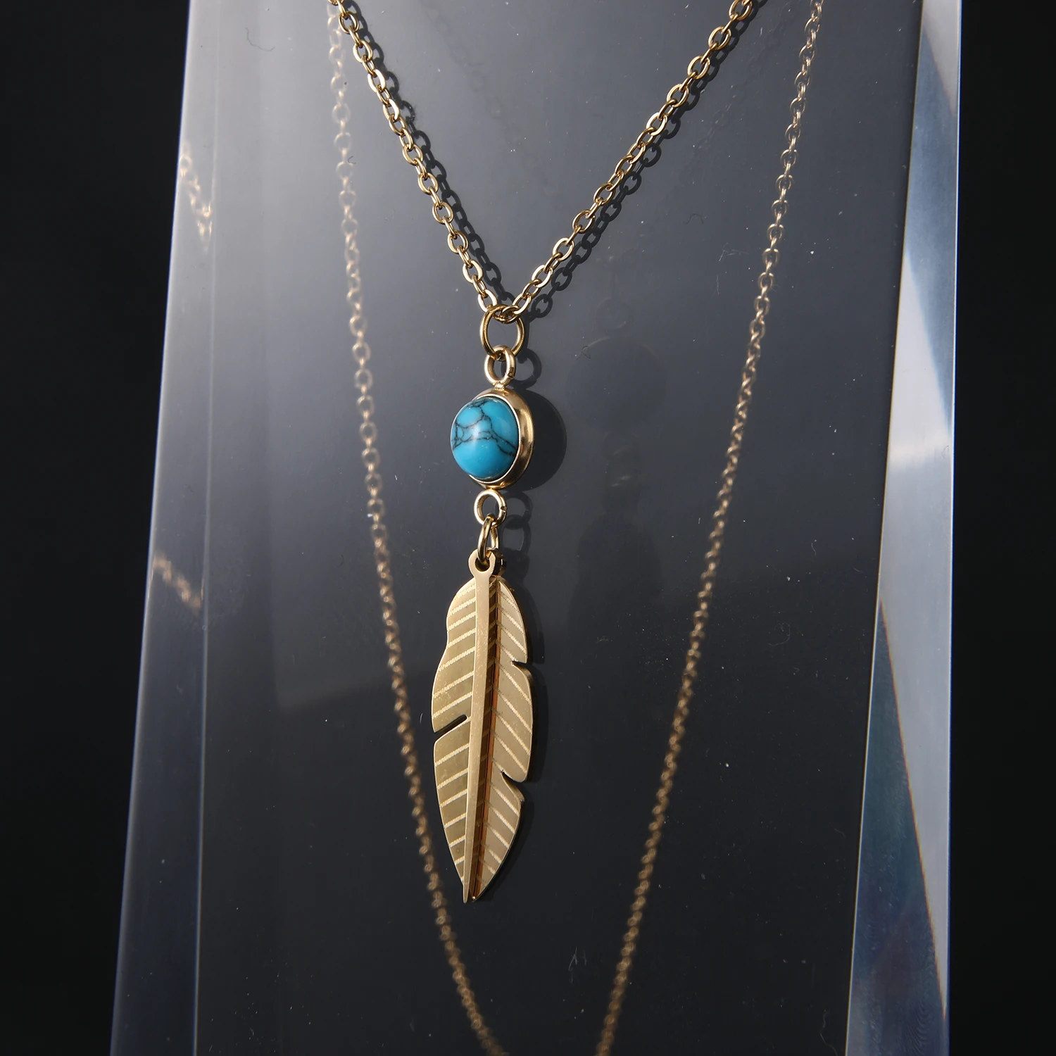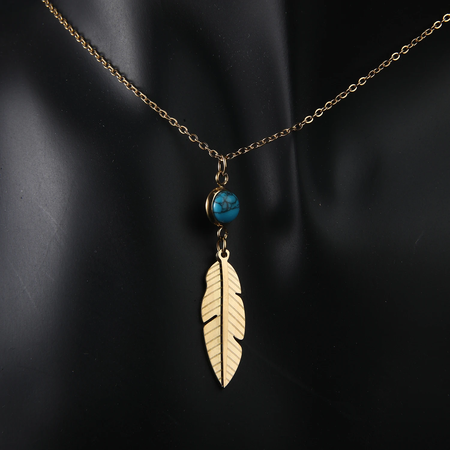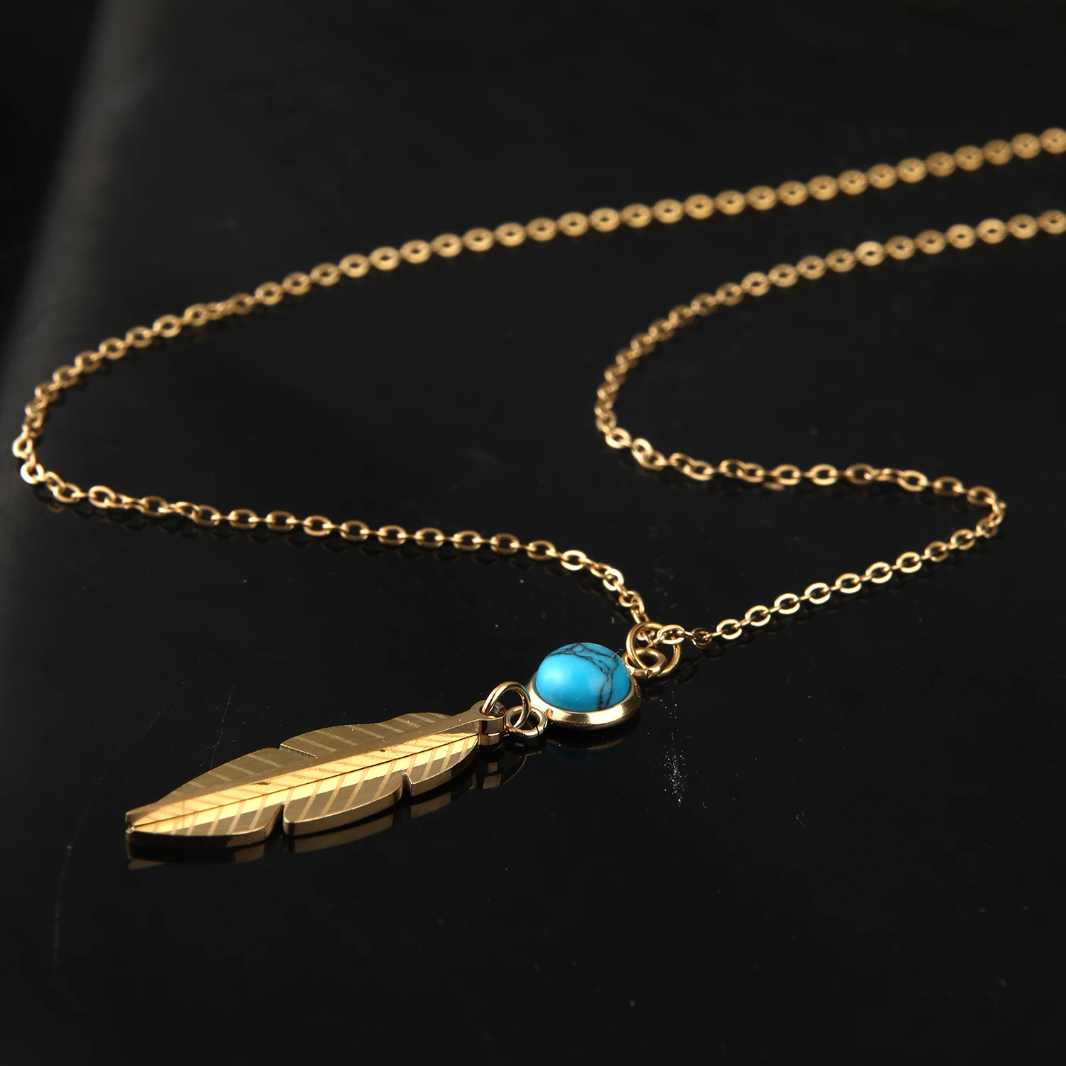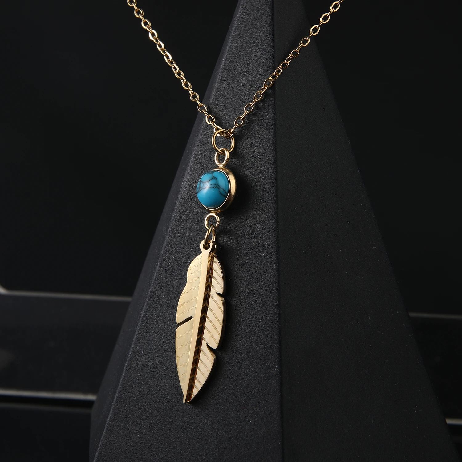 CUNYAN Fashion Jewelry Necklaces 2024 Trendy Gold Plated Feather Pendant Stainless Steel Necklace Women