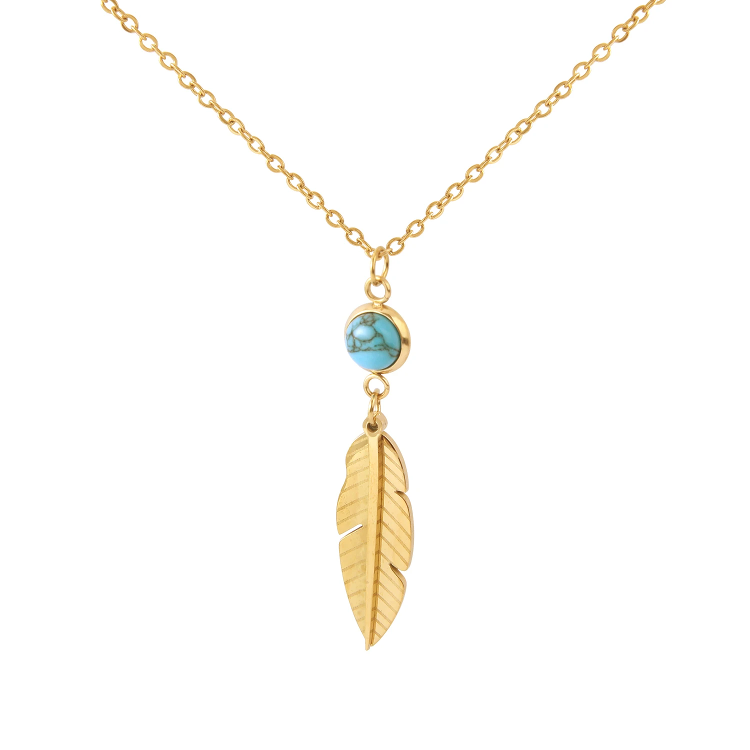 Home Fashion Jewelry CUNYAN Fashion Jewelry Necklaces 2024 Trendy Gold Plated Feather Pendant Stainless Steel Necklace Women