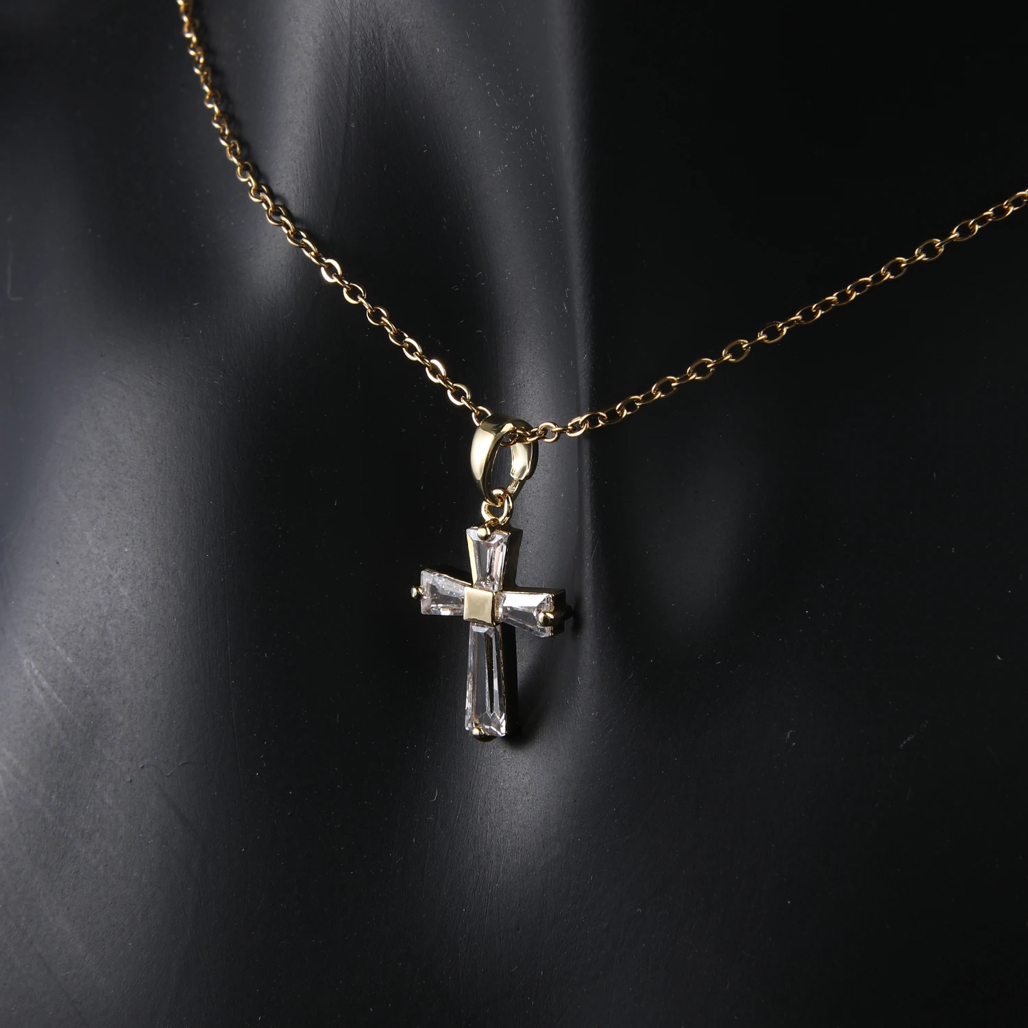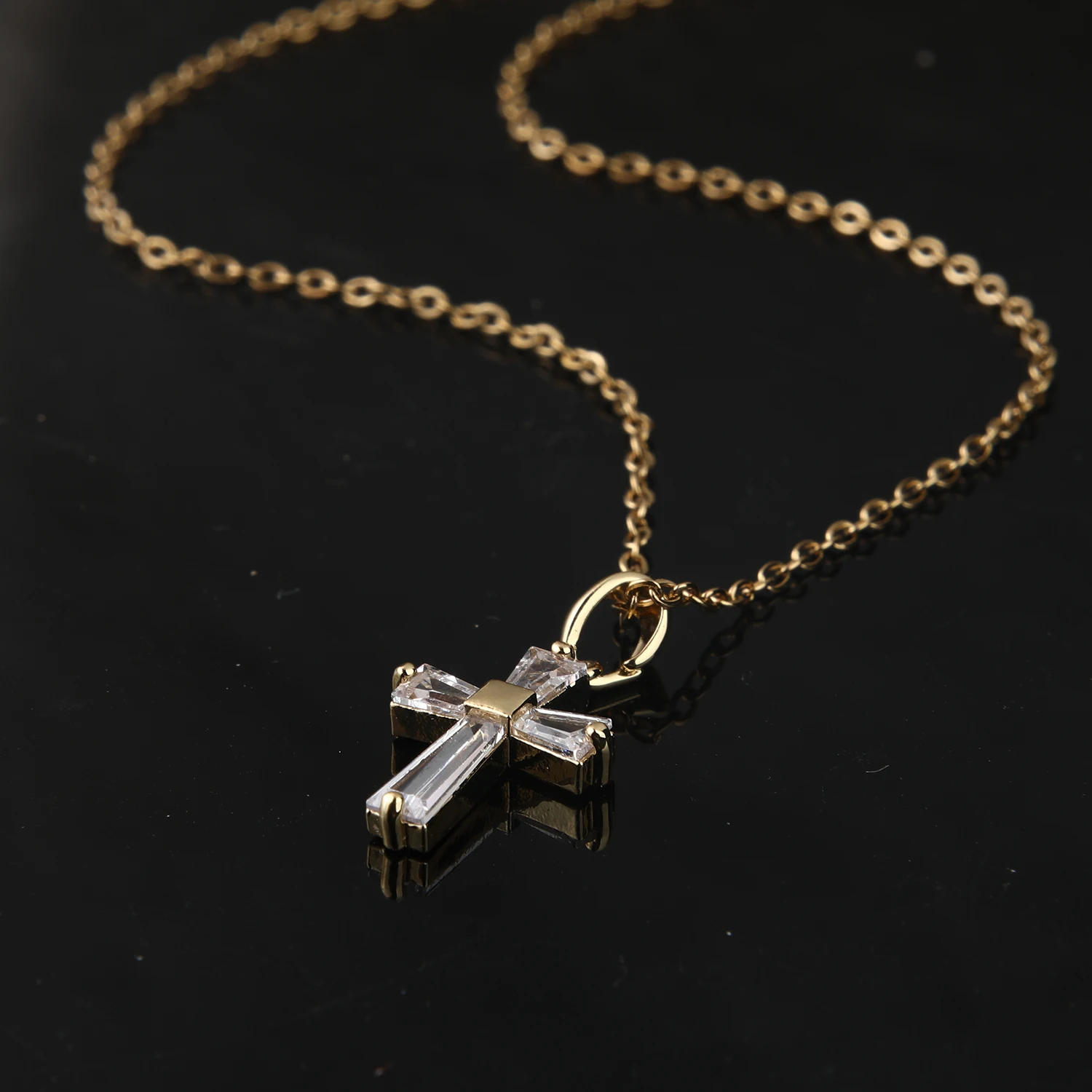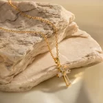 CUNYAN Fashion Jewelry Necklaces For Women 2024 Trendy Cubic Zirconia Small Cross Gold Plated Stainless Steel Necklace