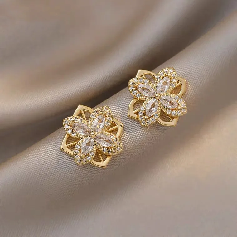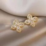 Designer Inspired Earrings Charm For Women Zircon Rotating Lucky Clover Earrings Studs Statement Earrings Jewelry