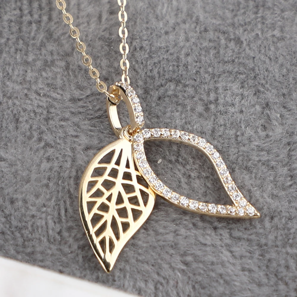Home Fashion Jewelry Fashion 925 Sterling Silver Clavicle Chain Jewelry Women Gold Plated Hollow Out Leaf Shape Pendant Necklace