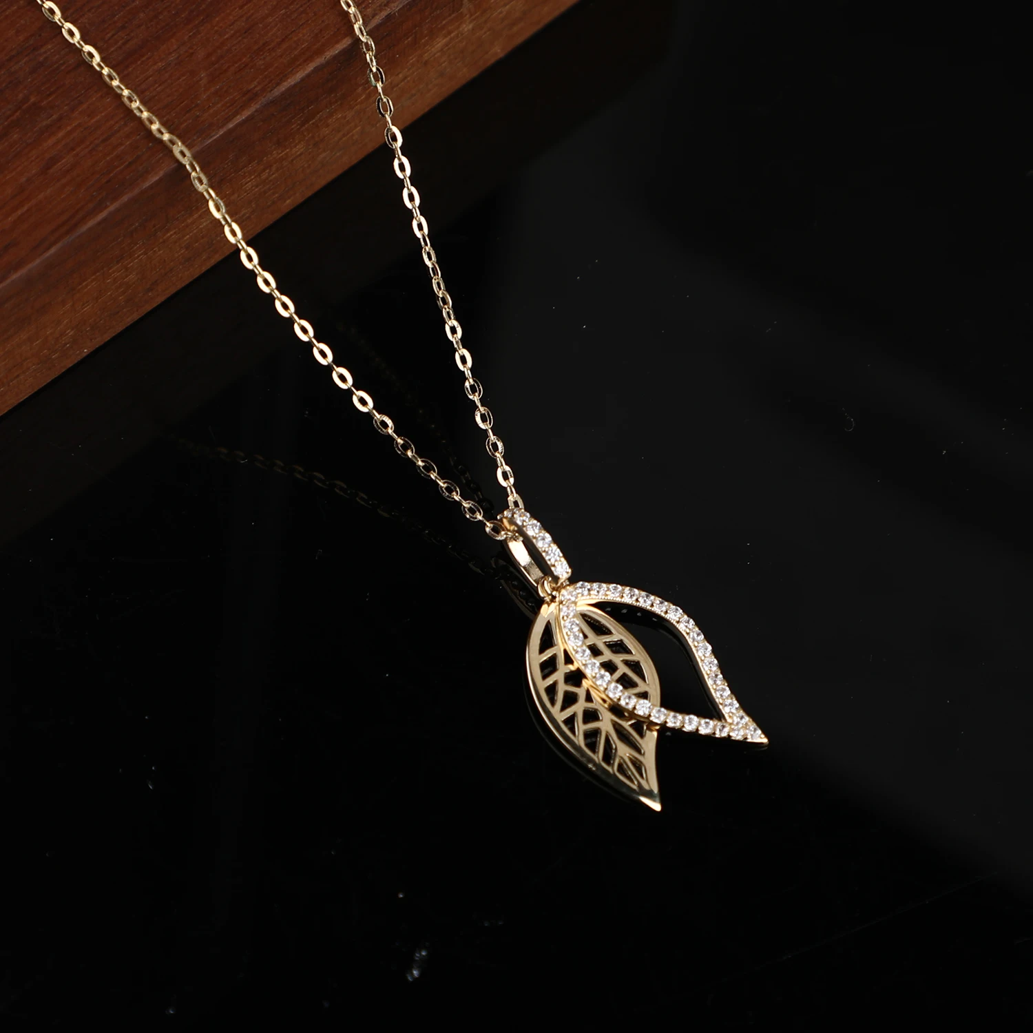 Fashion 925 Sterling Silver Clavicle Chain Jewelry Women Gold Plated Hollow Out Leaf Shape Pendant Necklace