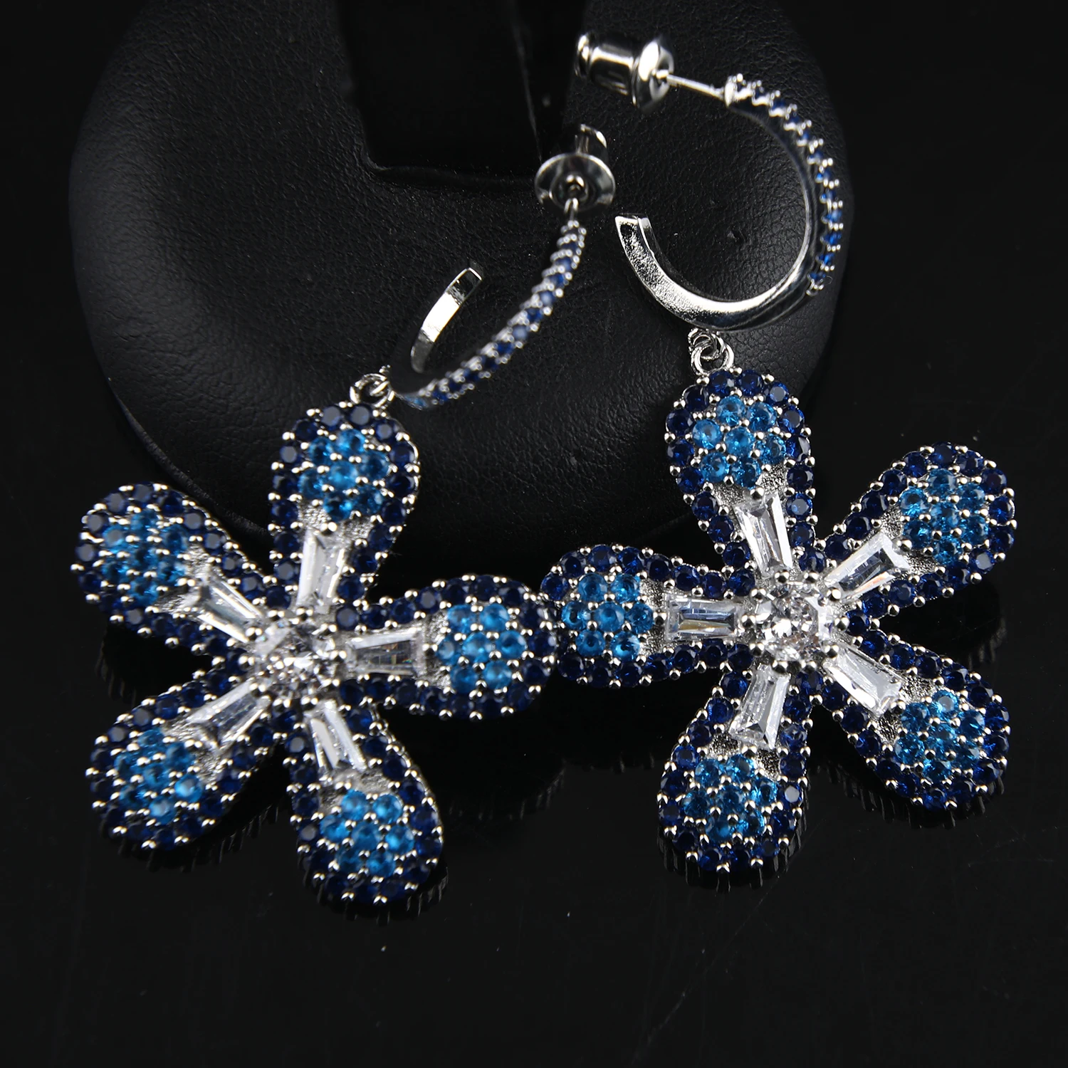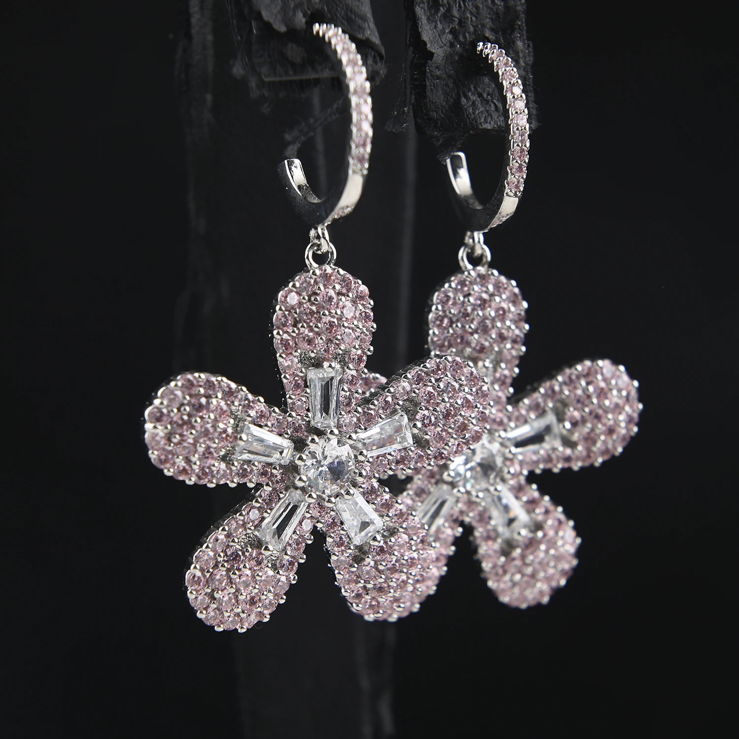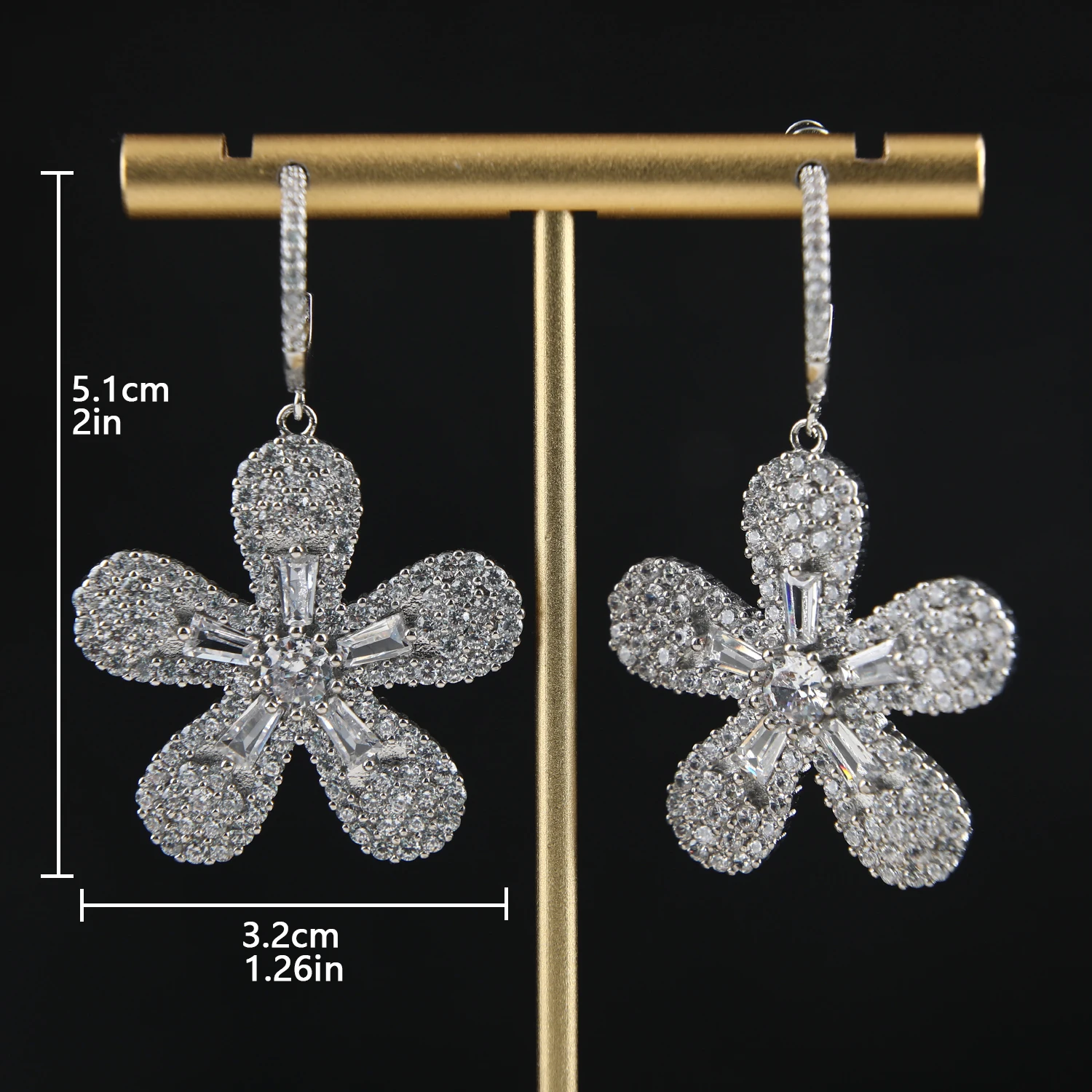 Fashion CZ Micro Pave Zirconia Flower Pendant Statement Earrings Bling Dangle Bridal Earrings