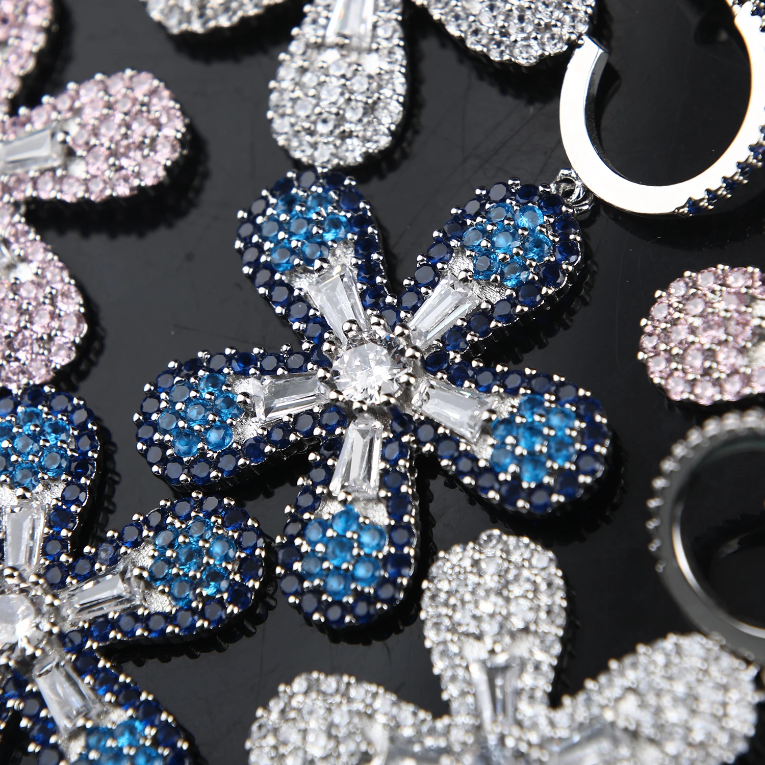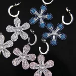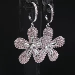 Home Fashion Jewelry Fashion CZ Micro Pave Zirconia Flower Pendant Statement Earrings Bling Dangle Bridal Earrings