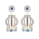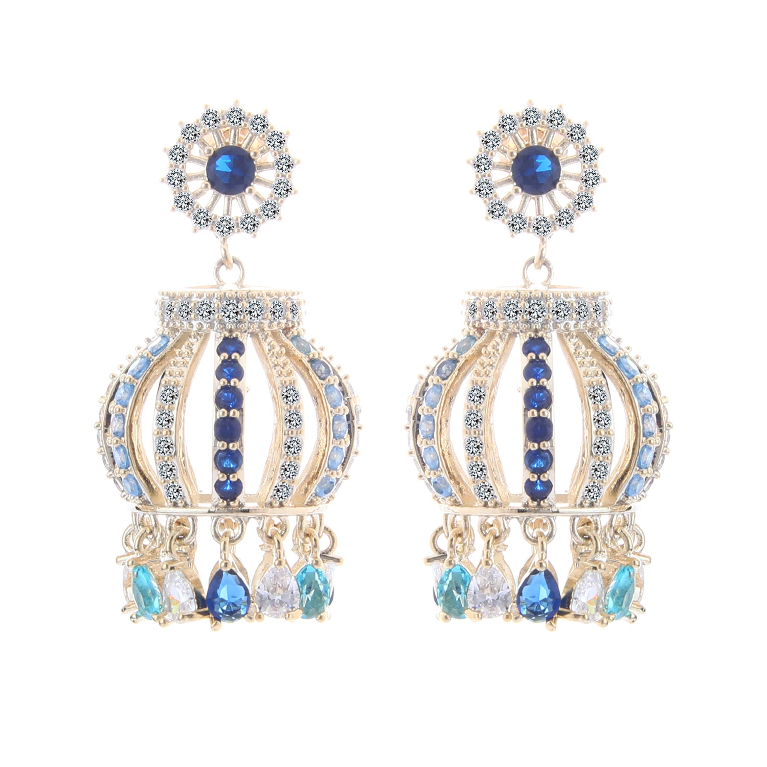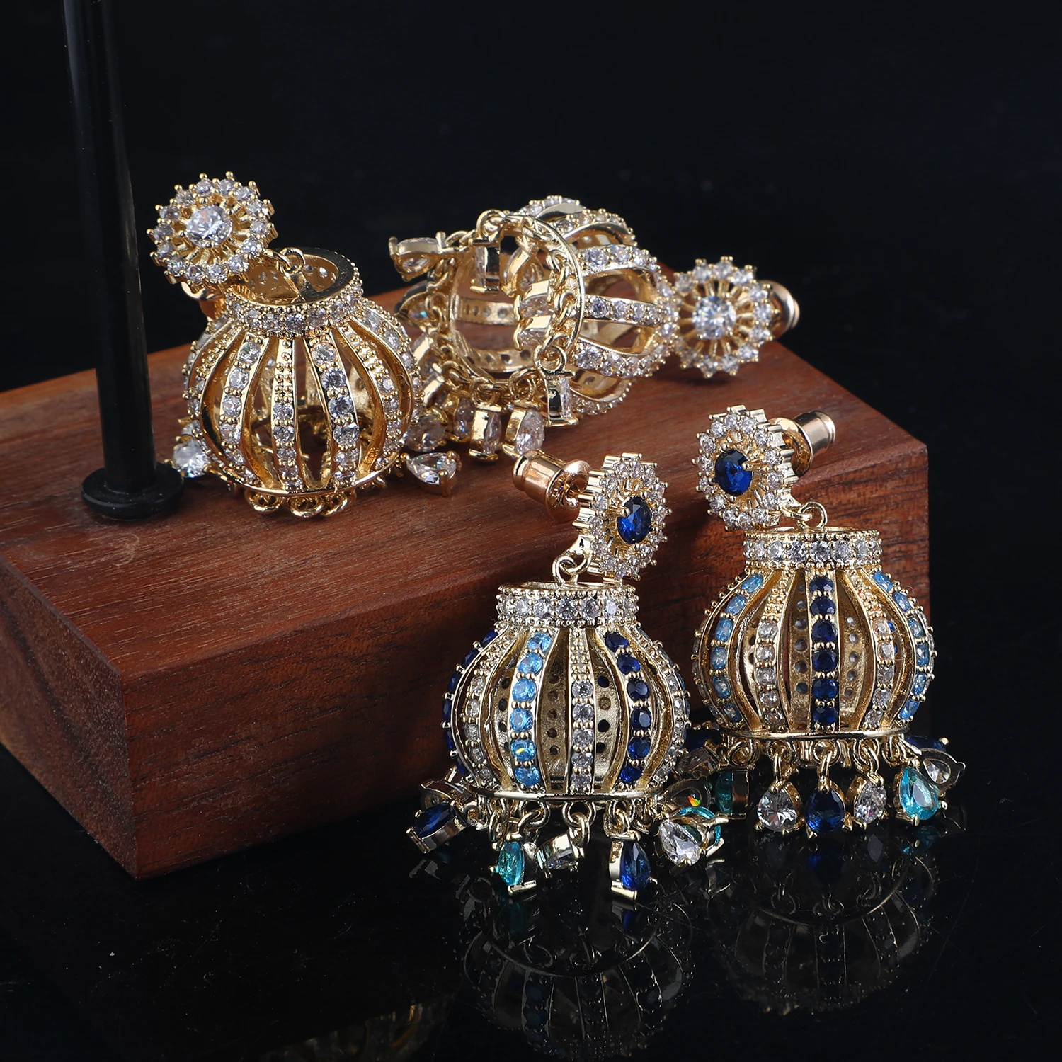 Fashion Designer Gold Plated Jhumka Earrings Indian Traditional Micro insert Zirconia 925 Silver Chandelier Earrings Women