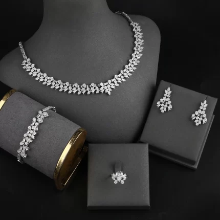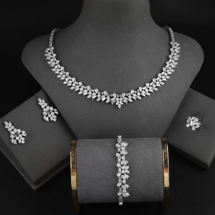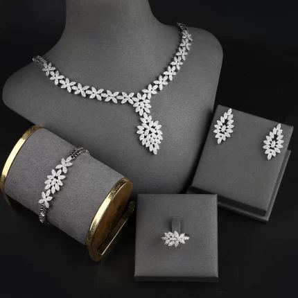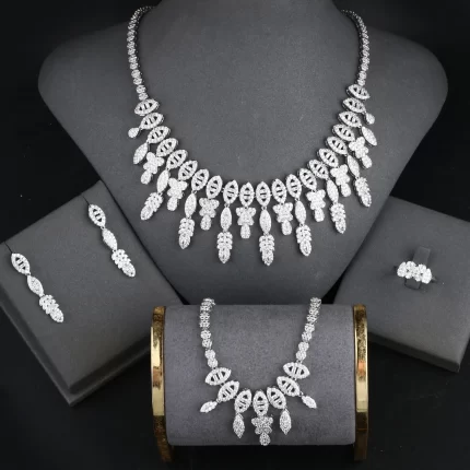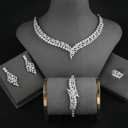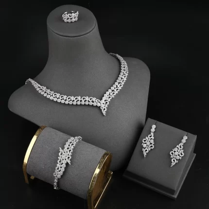 high quality Dubai Saudi Arabia luxury cubic zircon jewelry set necklace earrings ring bracelet4pcs jewelry set for women